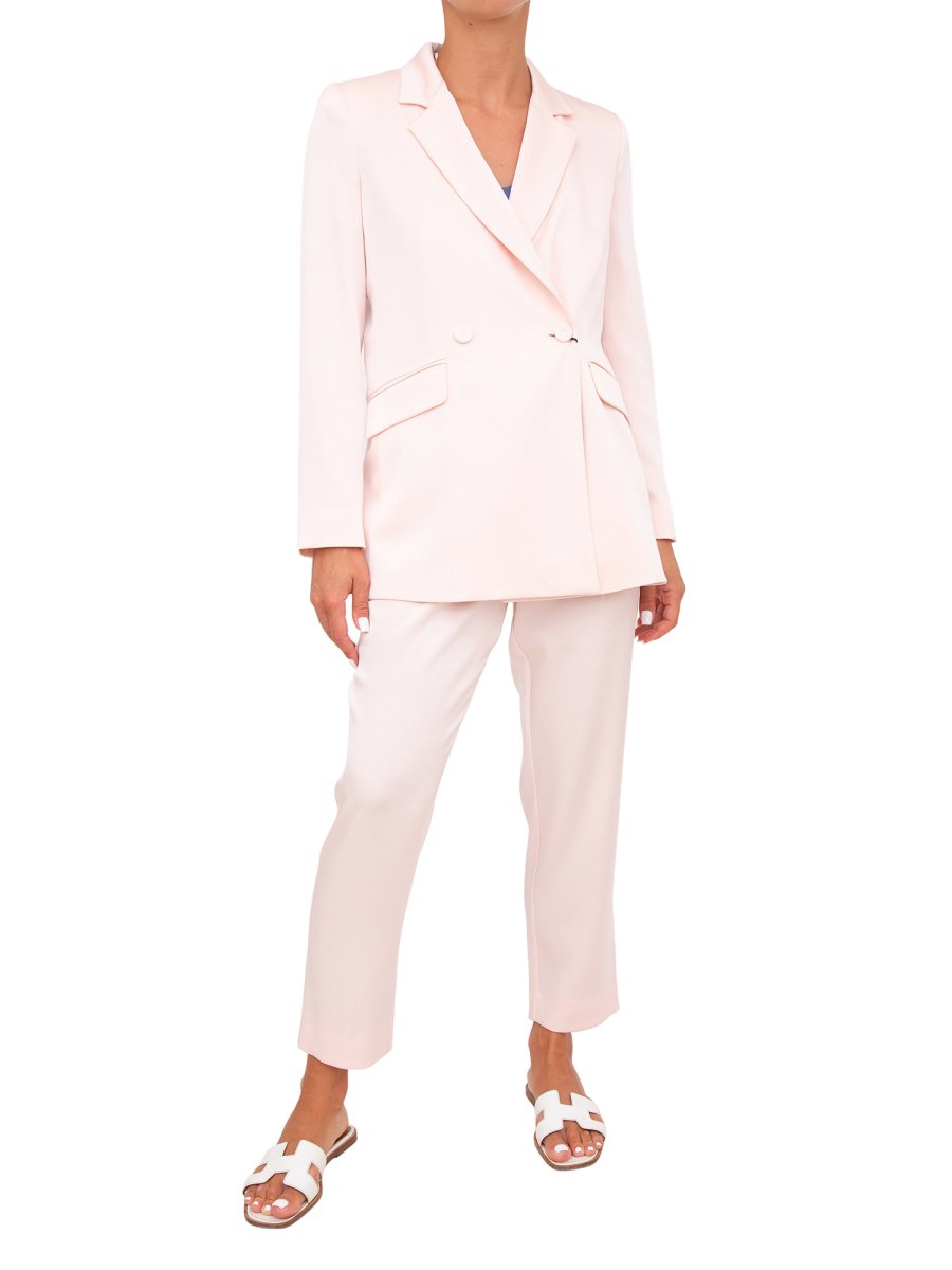 Blazer Marella lungo in satin, linea dritta. Collo a rever, maniche lunghe. Chiusura a doppiopetto, tasche con patta. Cintura coordinata. Foderato. Tessuto contenente materie prime derivanti dalla cellulosa del legno, fibra ricavata nel rispetto del patrimonio forestale.