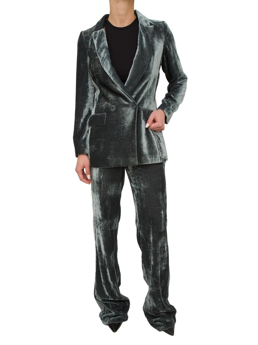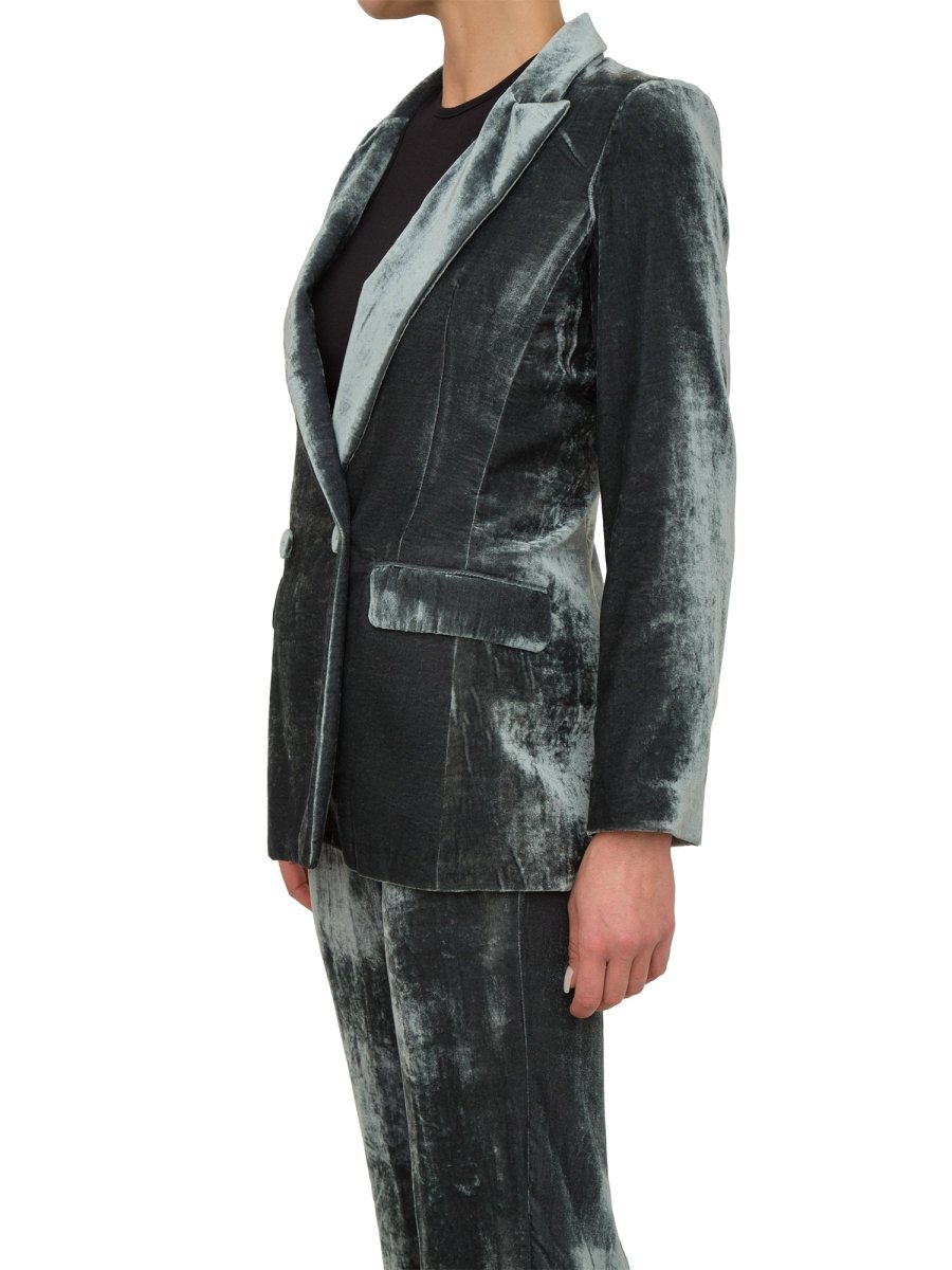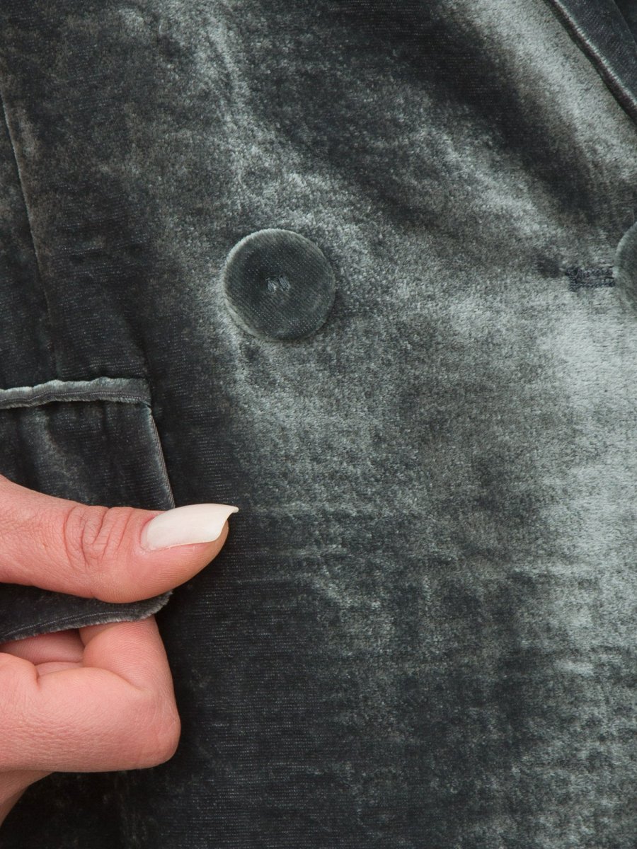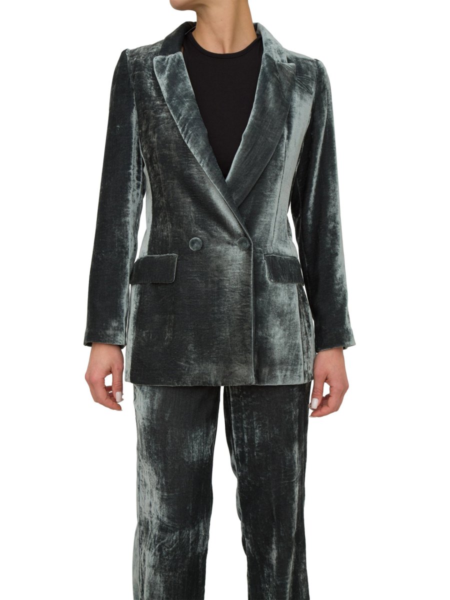 Blazer in velluto liscio, linea dritta. Collo a rever, maniche lunghe. Chiusura a doppiopetto, tasche con patta. Foderato.
