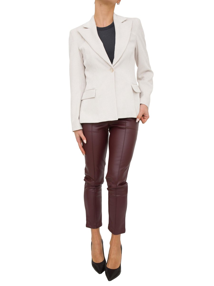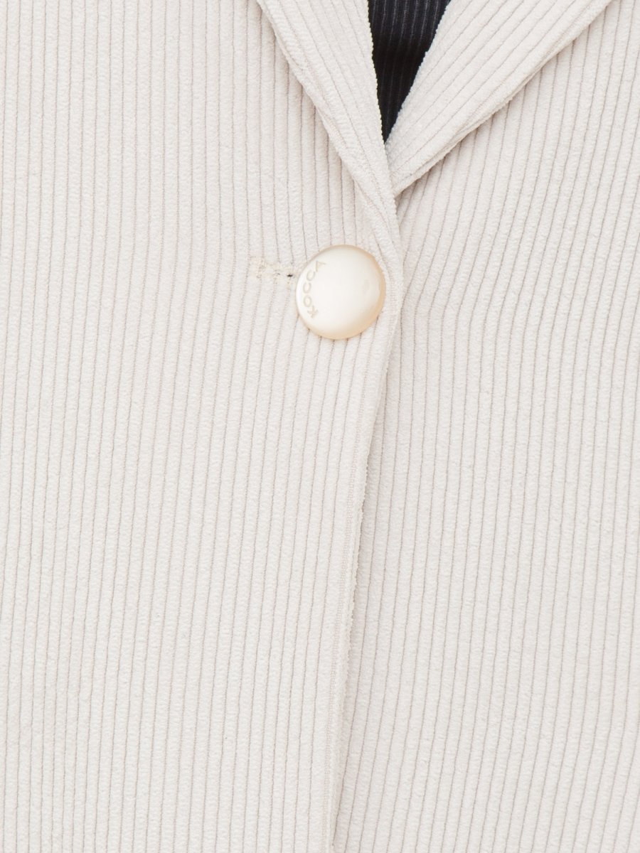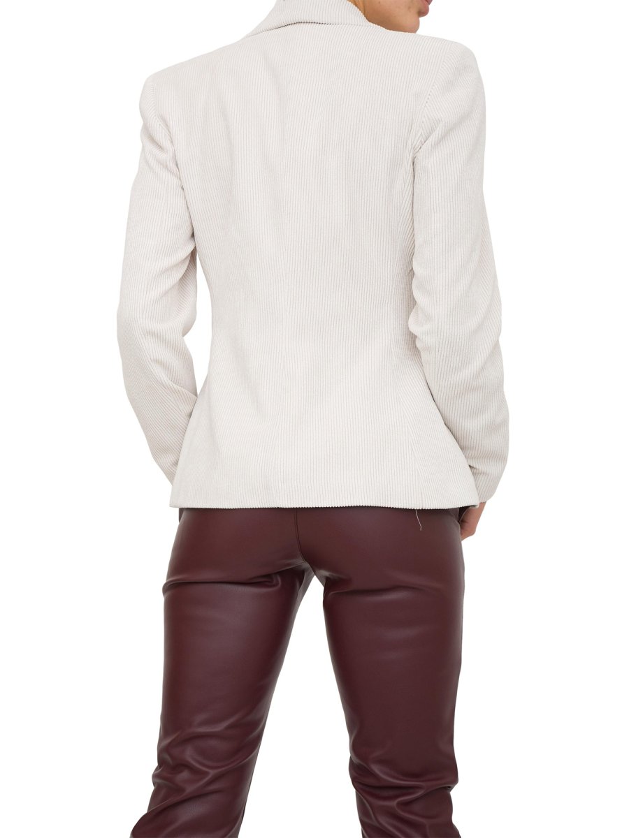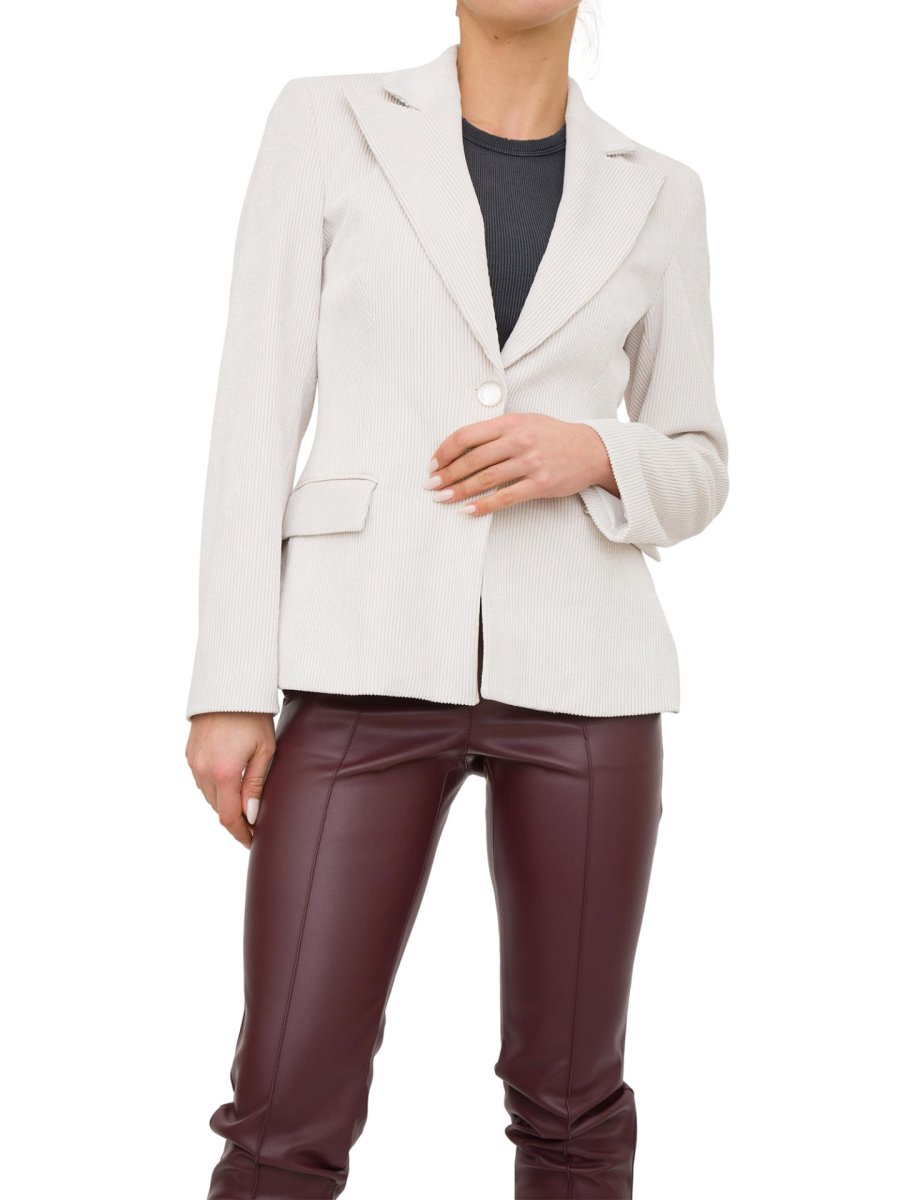 Giacca donna monopetto kocca foderata con chiusura a bottone e tasche a filetto con pattina. Il capo è caratterizzato dal tessuto a costine.