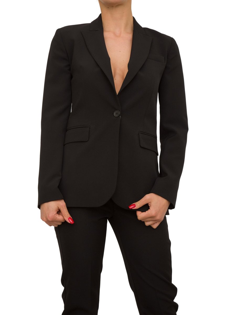 Giacca monopetto da donna LIU JO in tessuto stretch. Collo con rever a lancia, maniche lunghe. Chiusura monopetto con un bottone. Due tasche con patte. Spacco sul retro.