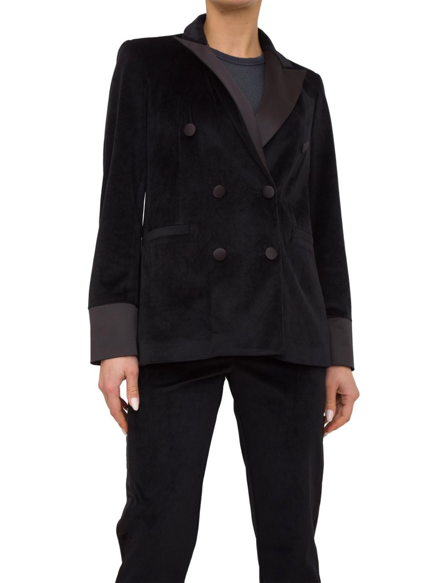 Giacca elegante doppiopetto Kocca, della Gold Collection, con tessuto scamosciato, tasche a filetto e polsini e rever con effetto satinato.