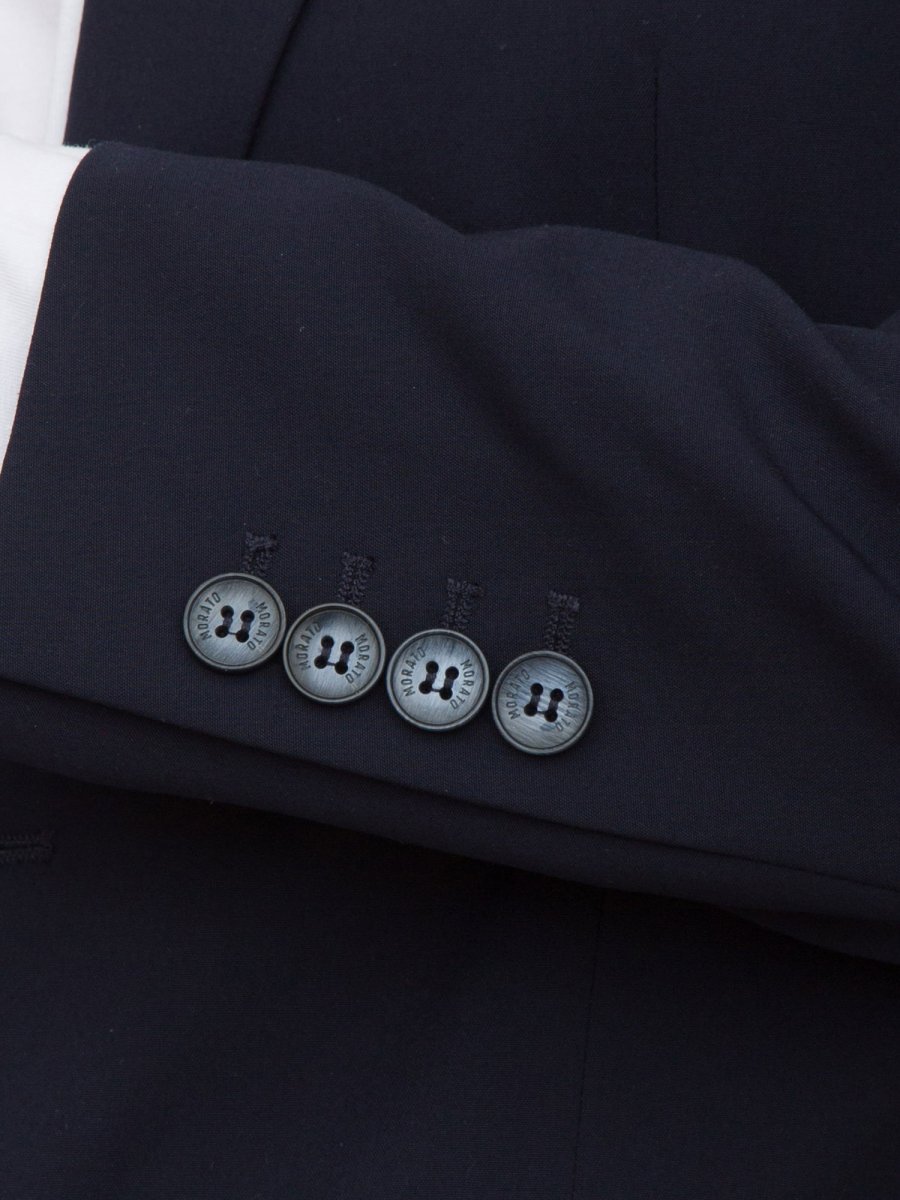 Однобортный пиджак от Энтони Морато имеет классический крой с застежкой на две пуговицы и классическими лацканами. Модель полностью выполнена из мягкой, однотонной эластичной вискозной смесовой ткани и дополнена двумя карманами с клапанами спереди, небольшим карманом на левой груди и четырьмя пуговицами в нижней части рукава.