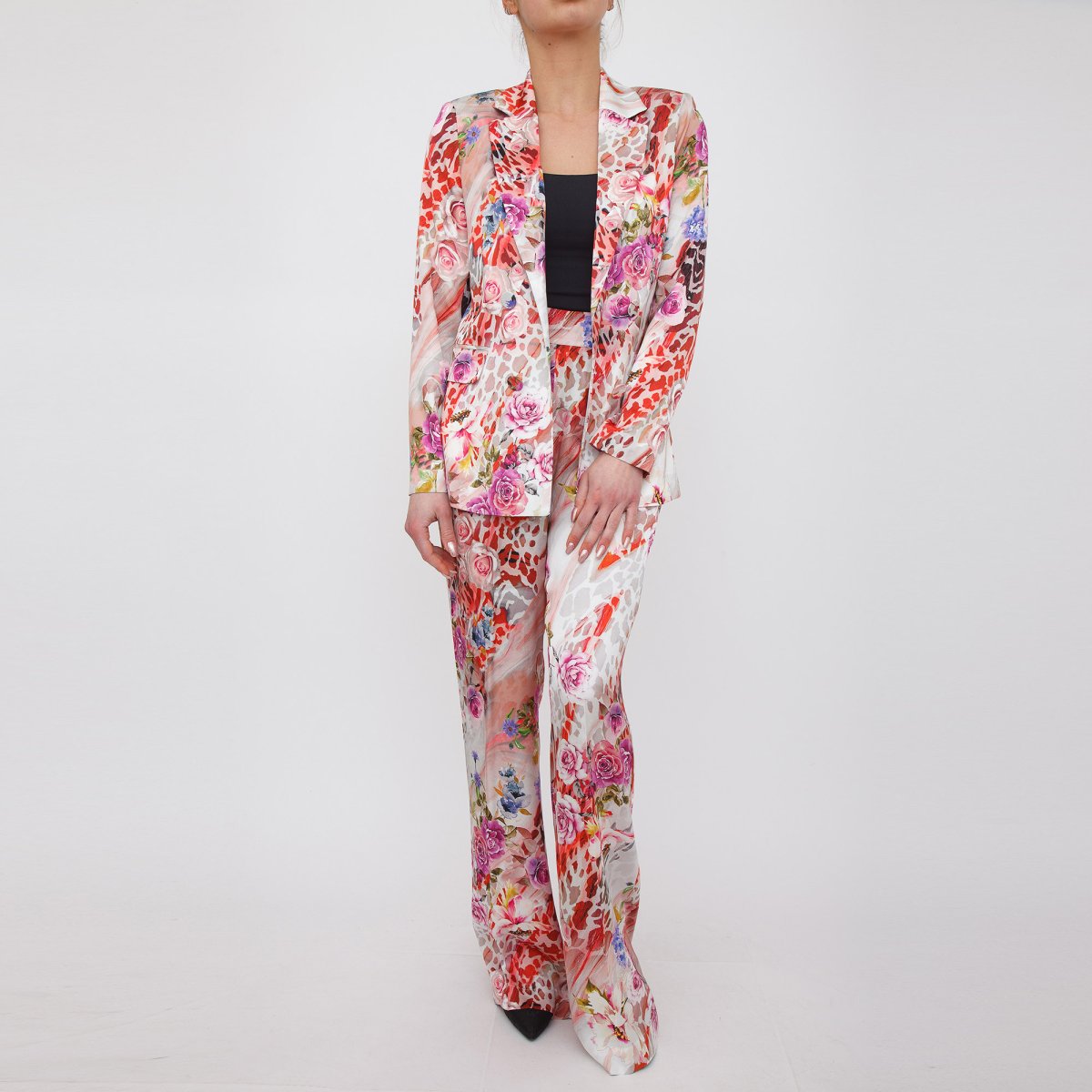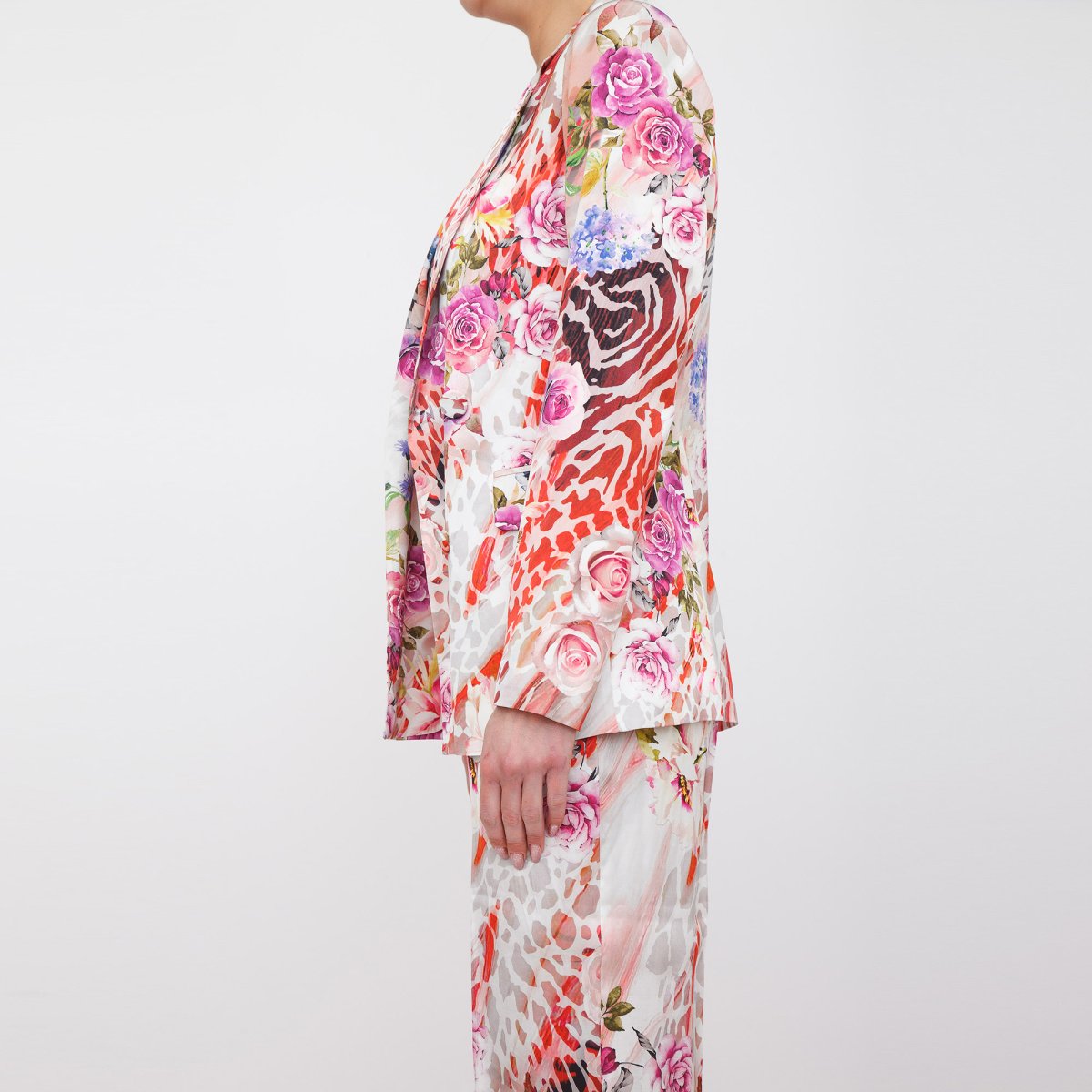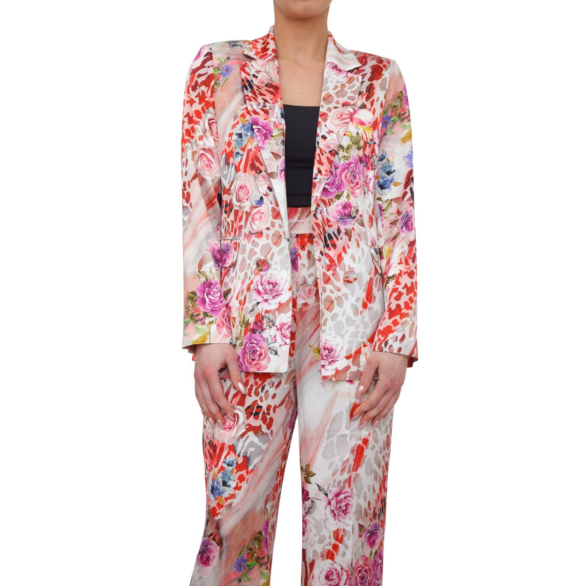 Giacca in viscosa con fantasia floreale.