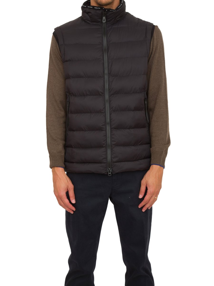 Gilet trapuntato Peuterey in tessuto superleggero di soli 40 gr di peso, realizzato con un nylon 20 denari e semi-opaco, con imbottitura in PrimaLoft® ThermoPlume®. Full zip centrale, tasche laterali e collo in piedi bordato da nastro logato.