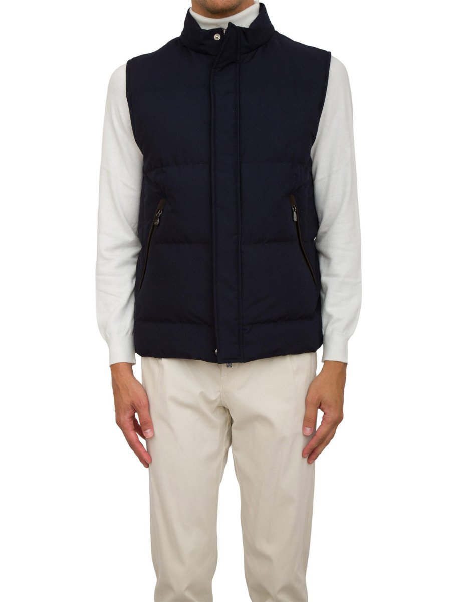 Мужской стеганый жилет из технического поплина – незаменимая вещь в межсезонье: Corneliani превращает его в функциональный предмет одежды благодаря водоотталкивающим свойствам, а также придает высокий уровень элегантности благодаря деталям из эко-замши. Подкладка обеспечивает максимальную защиту от первых холодов.