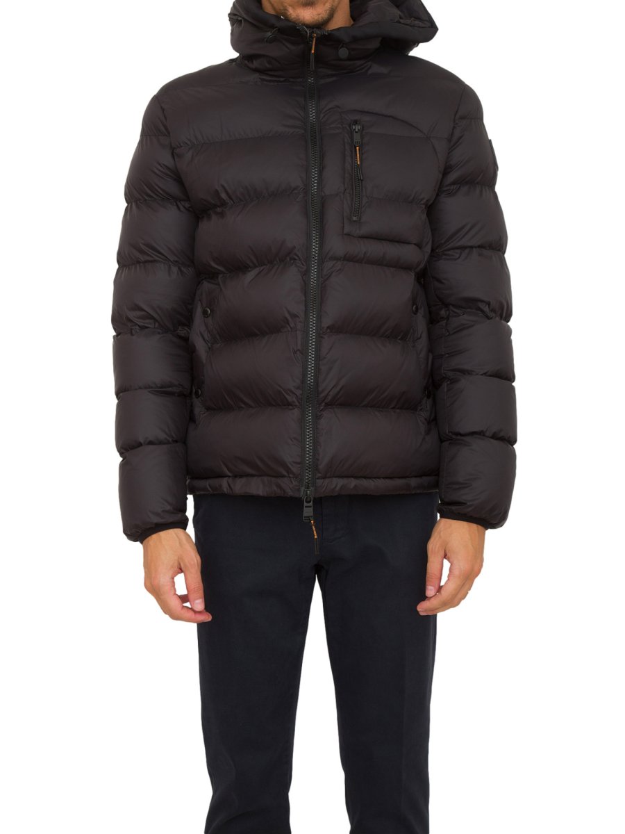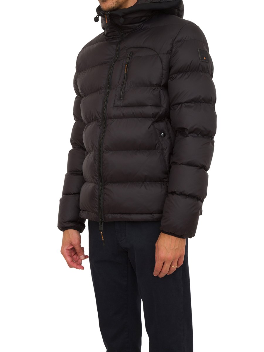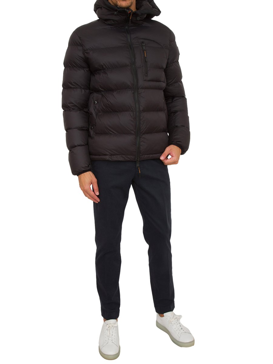 Giubbino uomo Dekker in nylon 20 denari, dal peso di soli 40 grammi. L’imbottitura fake down a iniezione diretta assicura un alto isolamento termico pur mantenendo la sua leggerezza. Full zip centrale, cappuccio fisso e tasche laterali con bottoni automatici. Tasca al petto zippata con dettaglio zig zag arancio. Collo profilato con nastro e polsi elasticati in contrasto nero.