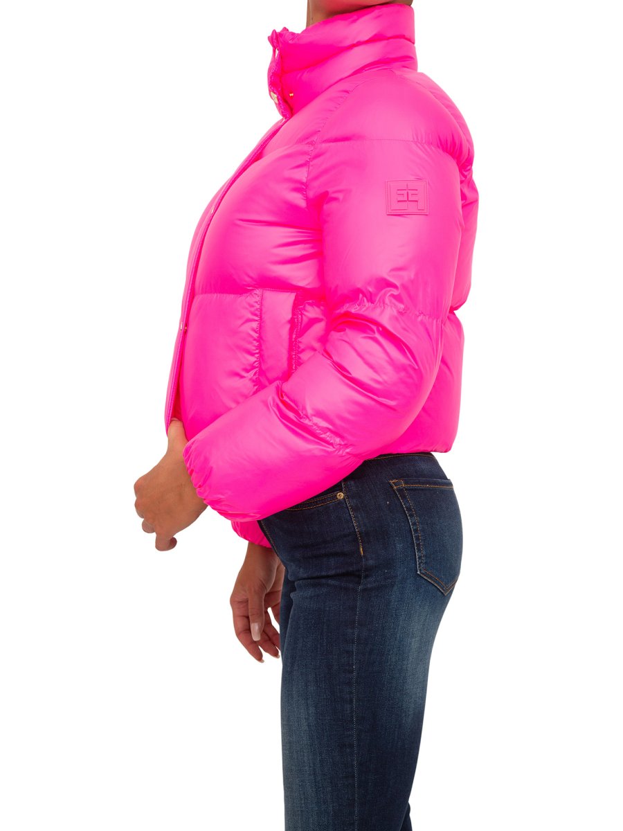 - Описание100%Piumino crop Elisabetta Franchi in vela satin lucida dalla linea trapezio con collo a cratere. Applicazione di patch logato in tinta.La modella indossa la taglia 40.Характеристики: