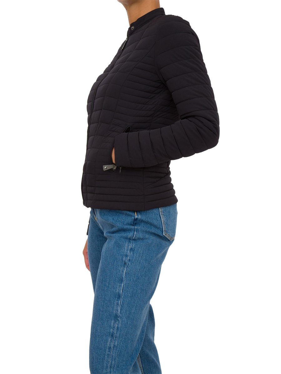 Giacca da donna Guess Jeans imbottita effetto trapuntato, realizzzata in tessuto sintetico, collo alla coreana, maniche lunghe, vestibilità slim e chiusura lampo anteriore.