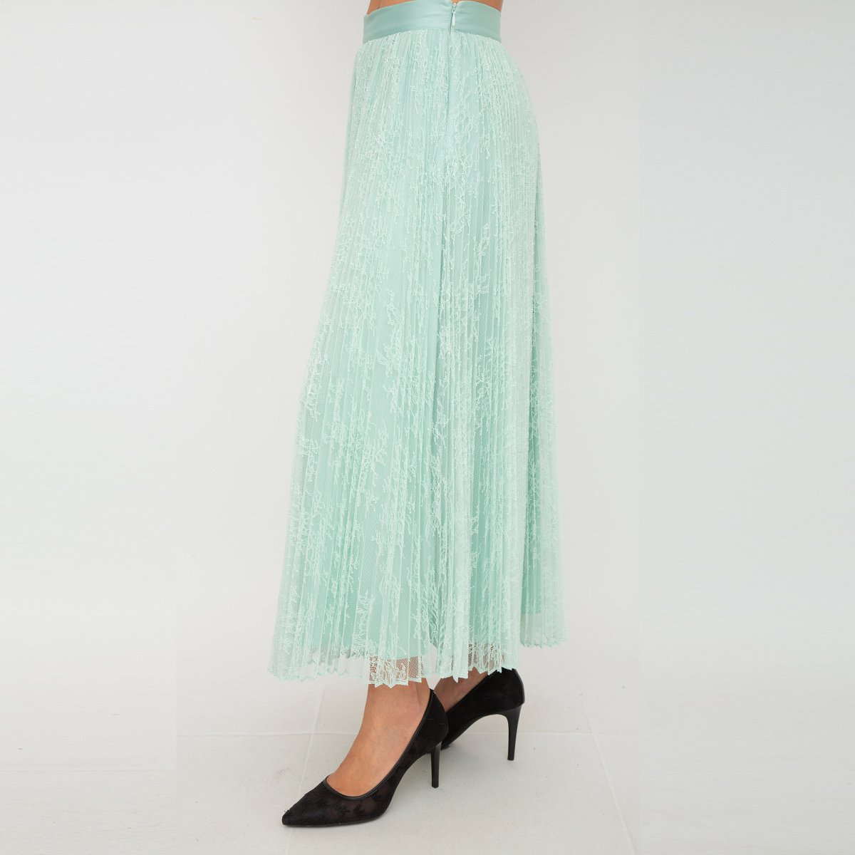 Gonna a vita alta plissettata con dettaglio in pizzo a fiori.