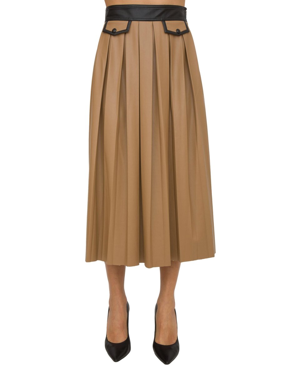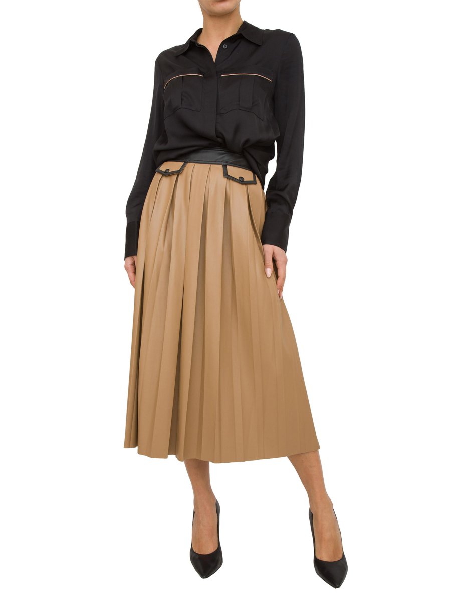 Длинная юбка NENETTE GONNA MIDI CON PIEGHE ECOPELLE LEGGERA CAMMELLO