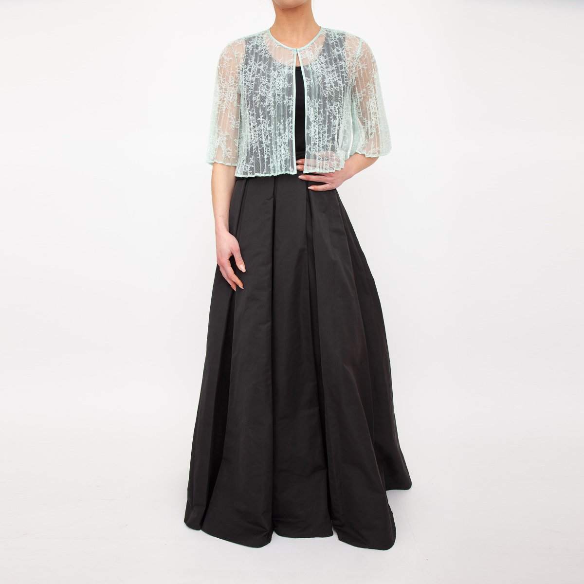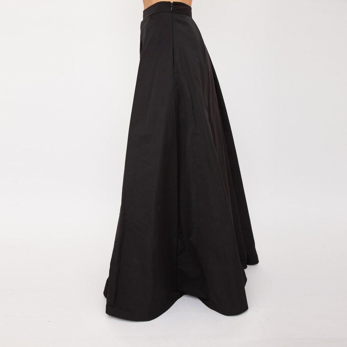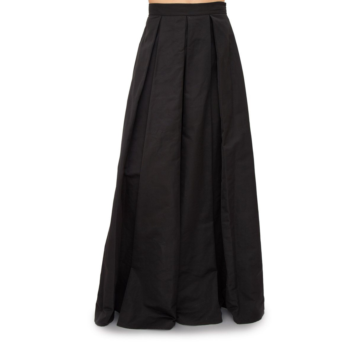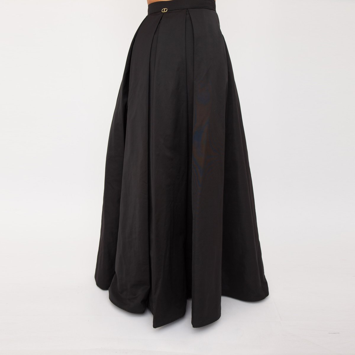 Gonna lunga in taffetà, dalla linea ampia, con pieghe in vita, zip al fianco, targhetta logo Oval T sul retro.