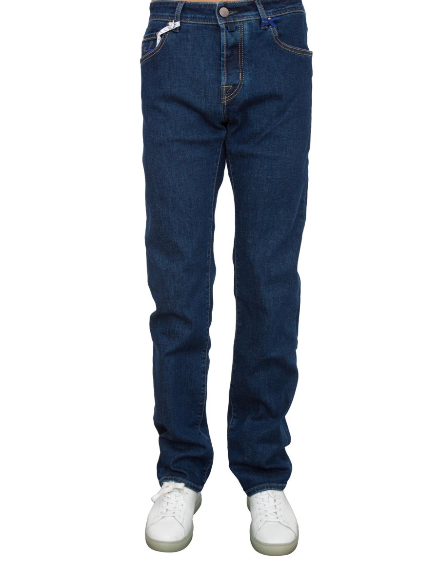 Откройте для себя джинсы узкого кроя Jacob Cohën из эластичного денима. Модель с пятью карманами отличается фирменными деталями, такими как вышитый логотип на кармане, пуговицы с логотипом и стандартная талия, обеспечивающая идеальную посадку. Застежка на пуговицы придает элегантность этому универсальному изделию, которое идеально подойдет для любого случая: от повседневного до элегантного.