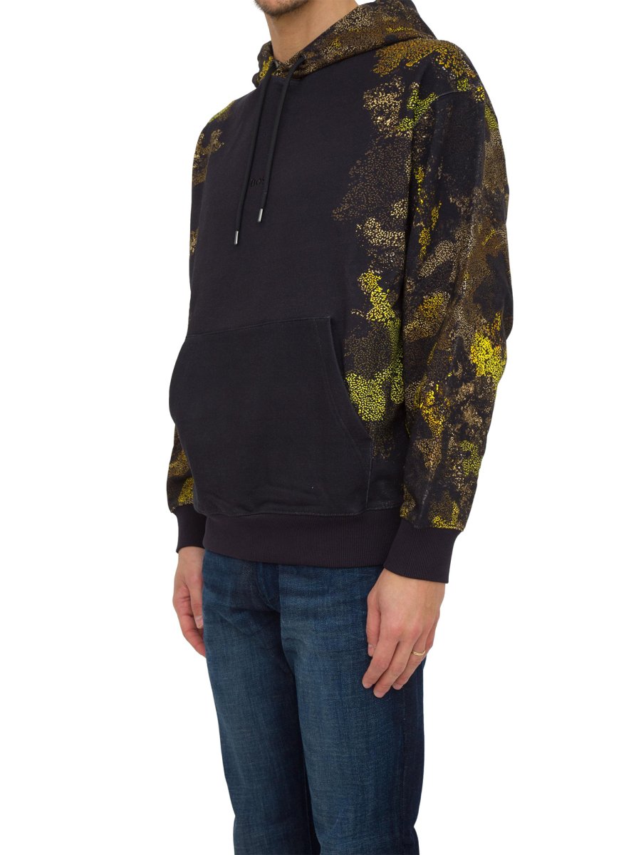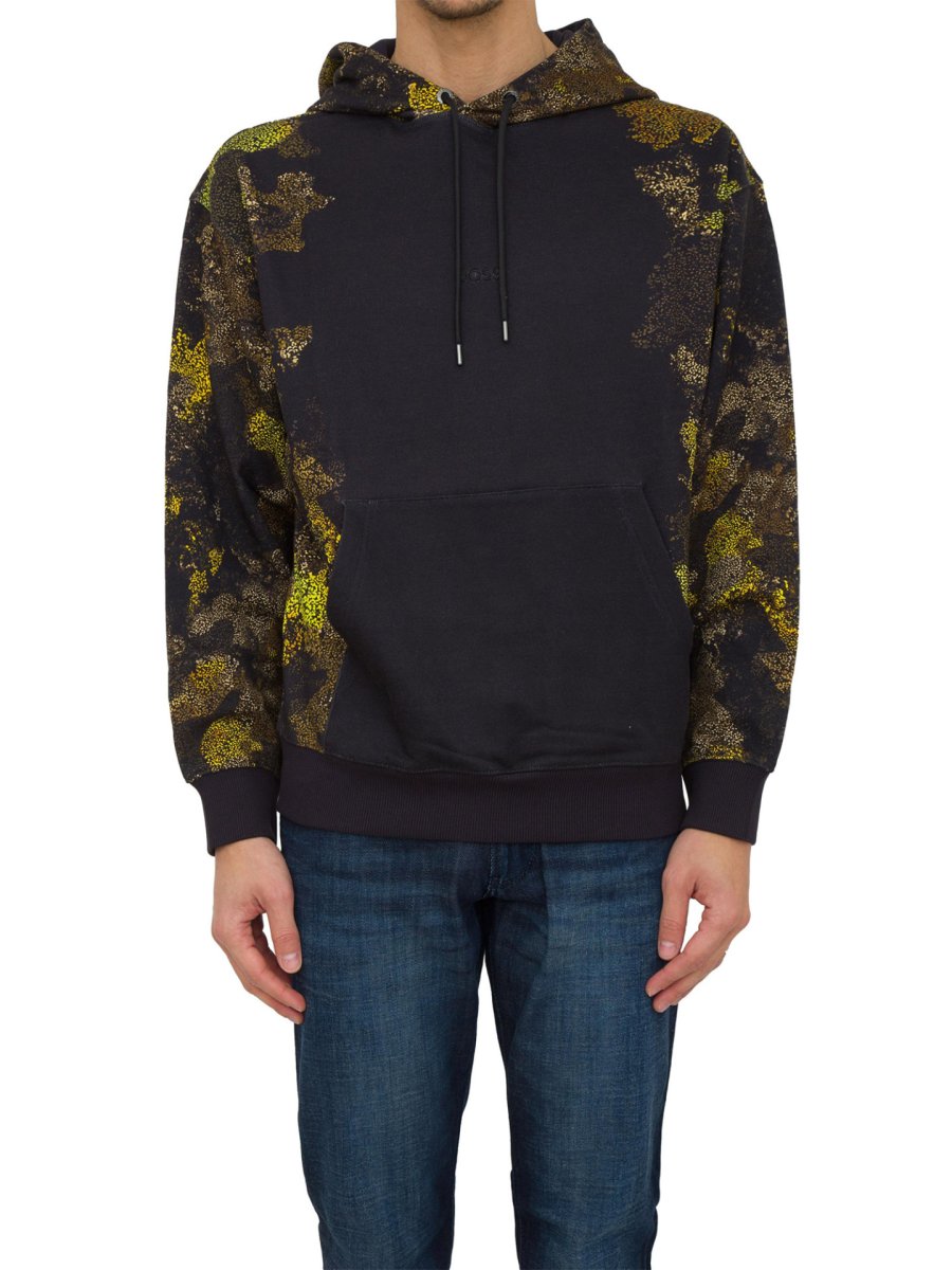 Una felpa con cappuccio oversize BOSS Uomo realizzata in terry di cotone con stampa ispirata ai licheni e logo.