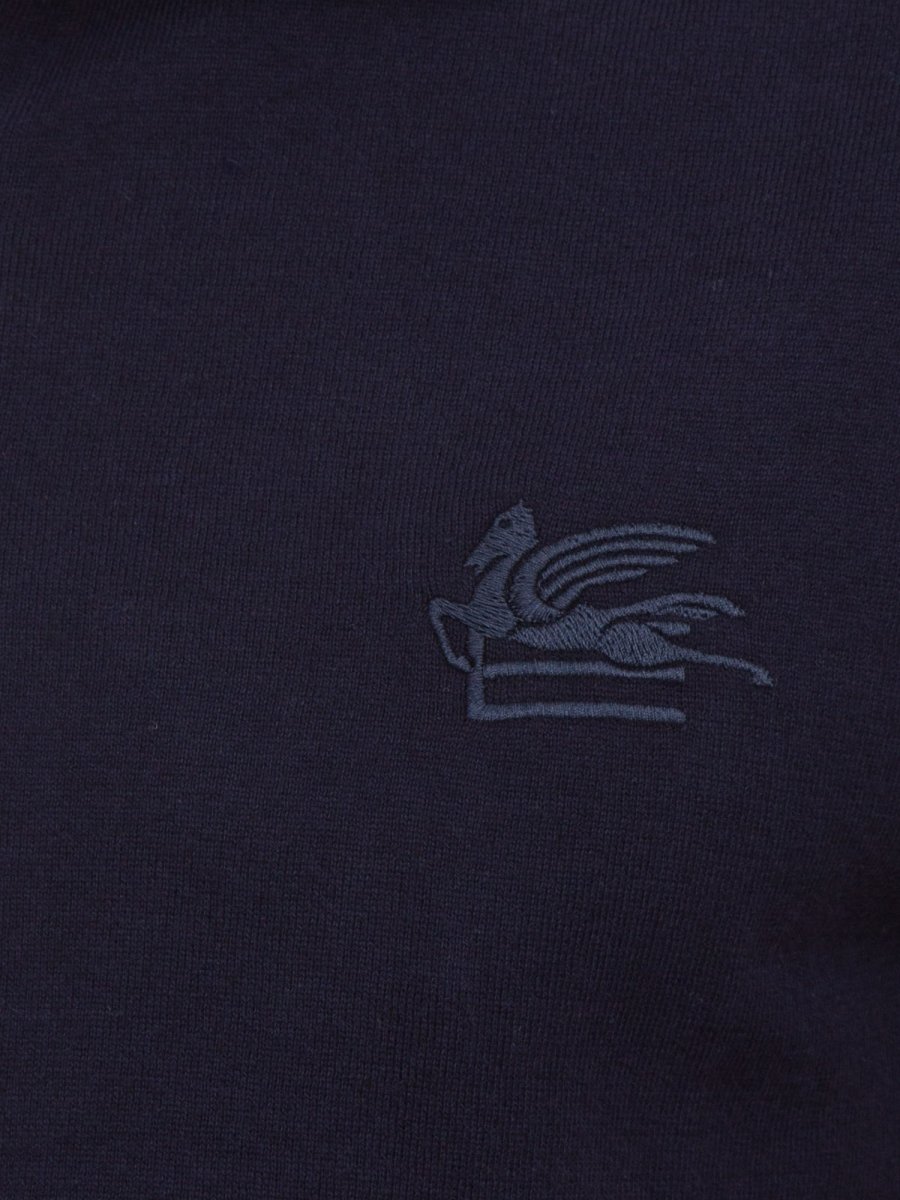 Polo realizzata in maglia di cotone e cashmere. Il modello è impreziosito con Pegaso e logo ETRO ricamati ton-sur-ton sul petto.