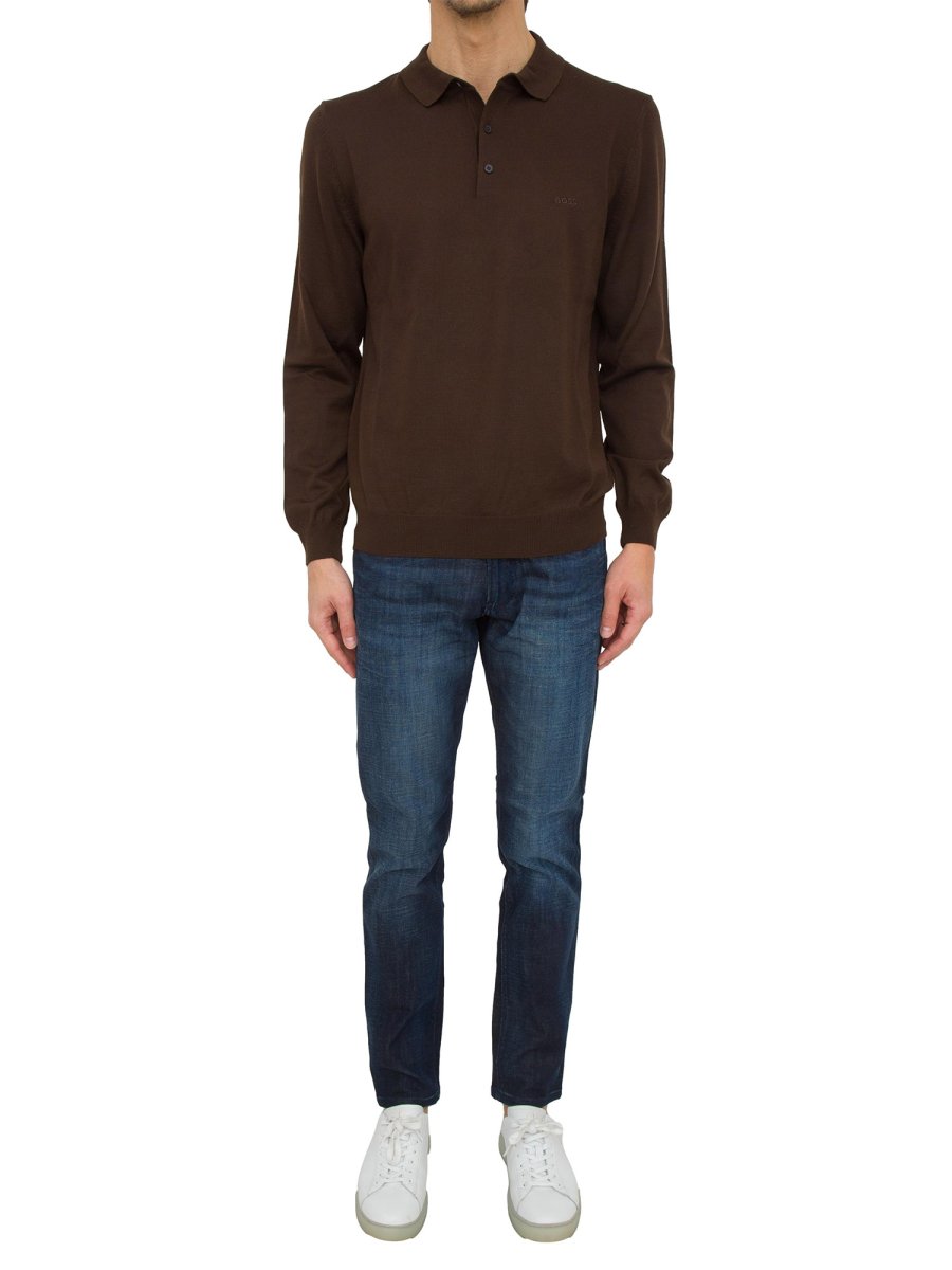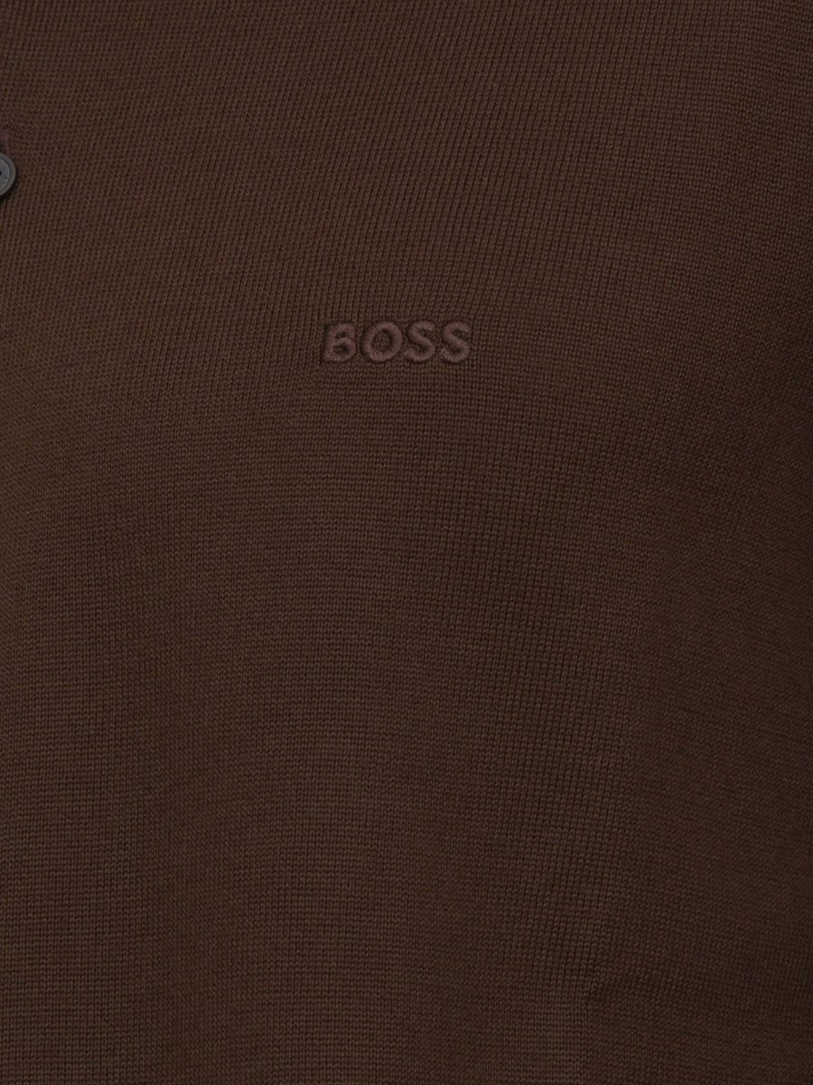 Un originale maglione BOSS Uomo dalla vestibilità regular fit. Caratterizzato da un logo tono su tono ricamato sulla parte sinistra del petto, questo maglione maschile è completato da un colletto polo rifinito con le righe tipiche del marchio all'interno.