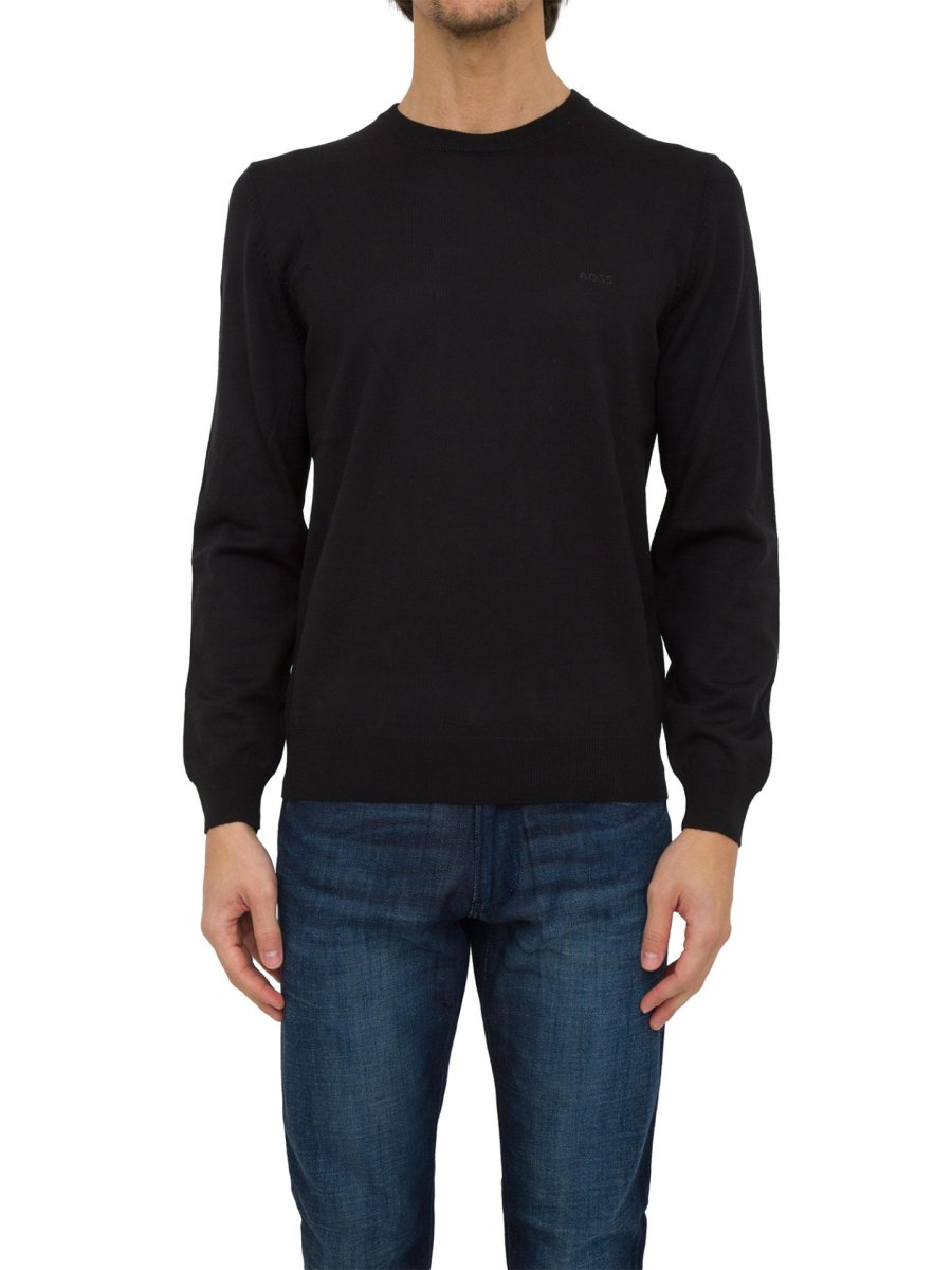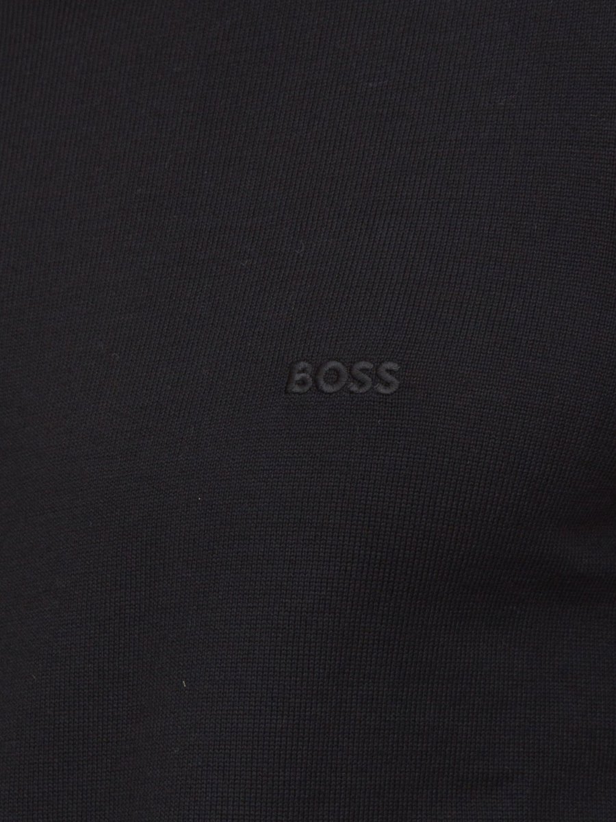 Maglione BOSS Uomo caratterizzato da un logo ricamato sulla parte sinistra del petto per un tocco di stile esclusivo, questo elegante maglione regular fit presenta righe tipiche del marchio all'interno della scollatura a girocollo.