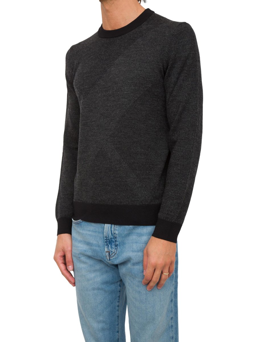 Свитер BOSS с круглым вырезом из однотонной пряжи из мулине. Эта модель стандартного кроя украшена двухцветным жаккардовым узором по всей поверхности.