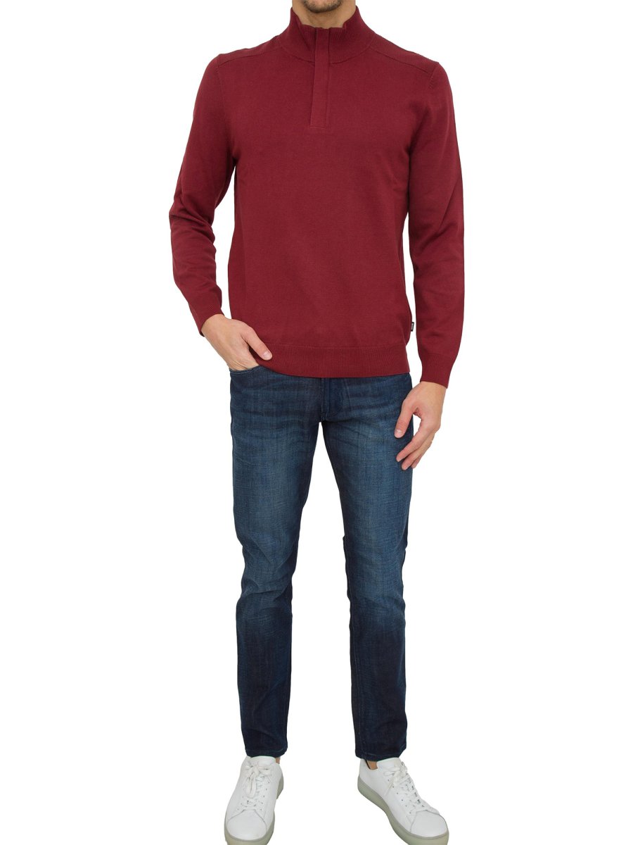 Maglione Troyer regular fit BOSS Uomo realizzato in cotone e lana vergine con zip nascosta e parte interna della chiusura a spina di pesce.