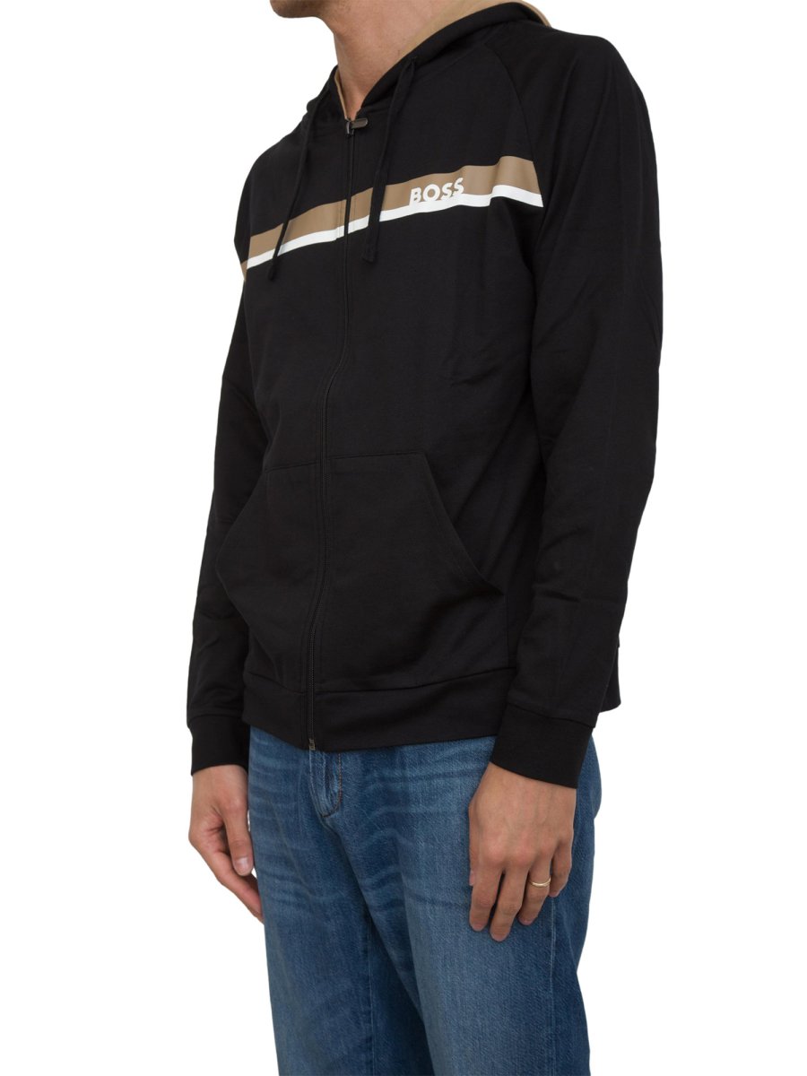 Эта толстовка с капюшоном BOSS Menswear с графическим логотипом и полосками имеет классический крой, который идеально подходит для многослойного ношения. Контрастная подкладка капюшона сочетается с принтом.