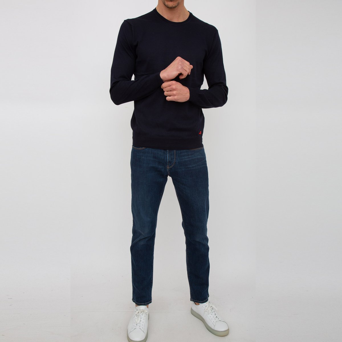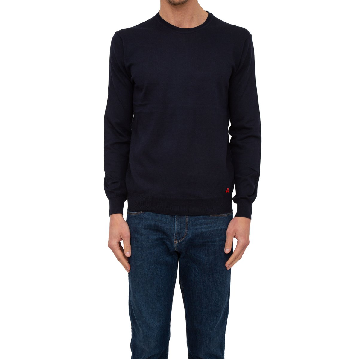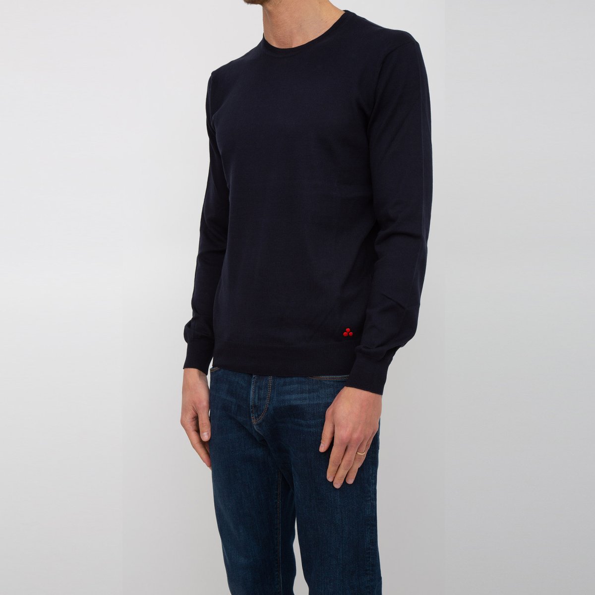 Maglia paricollo in tricot di cotone, soffice e leggera. Logo rosso ricamato al fondo. Vestibilità regolare.