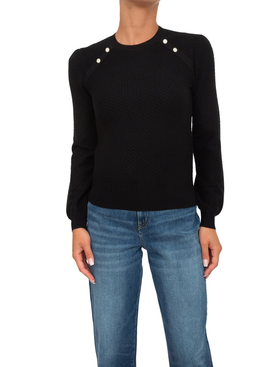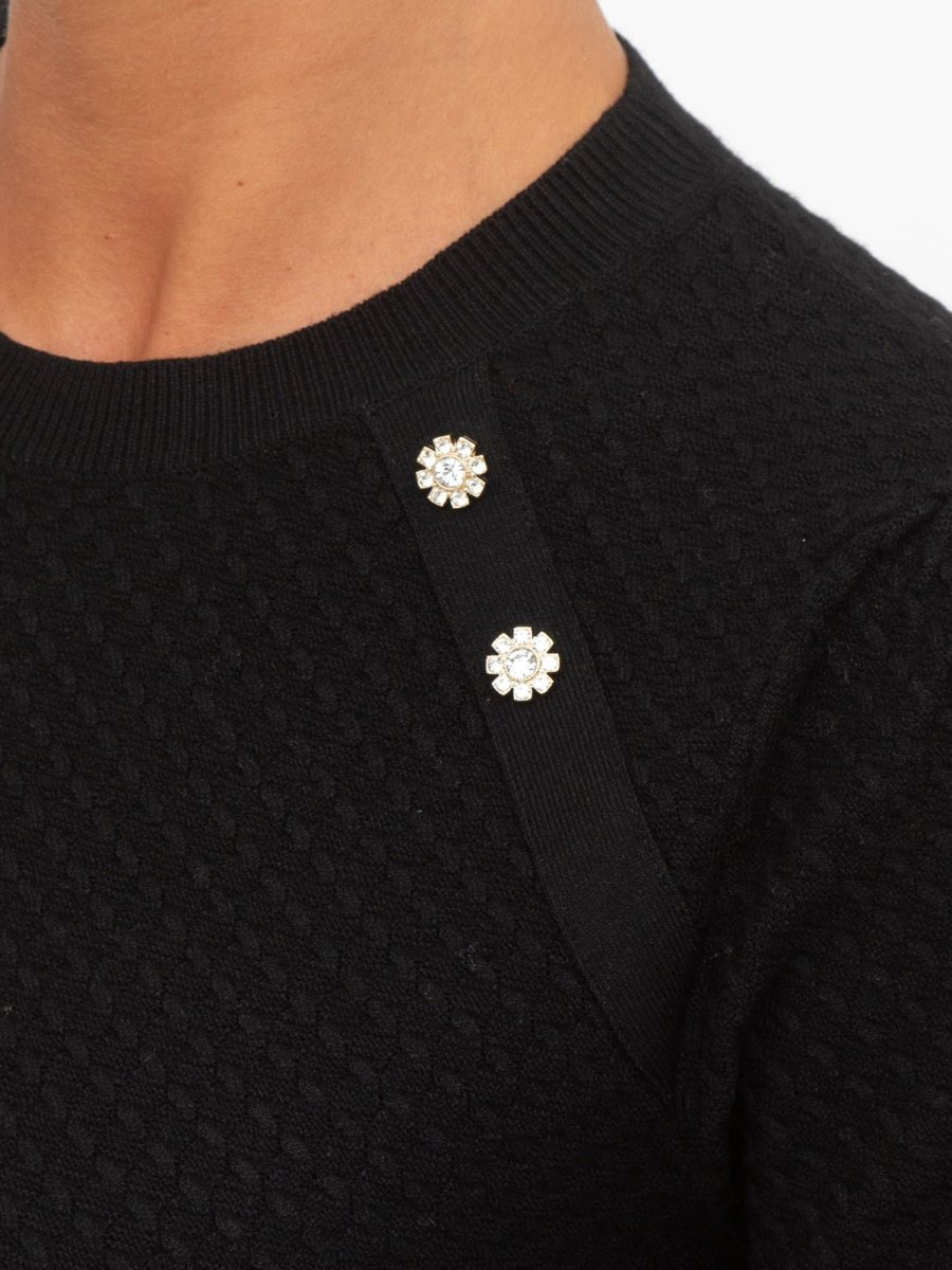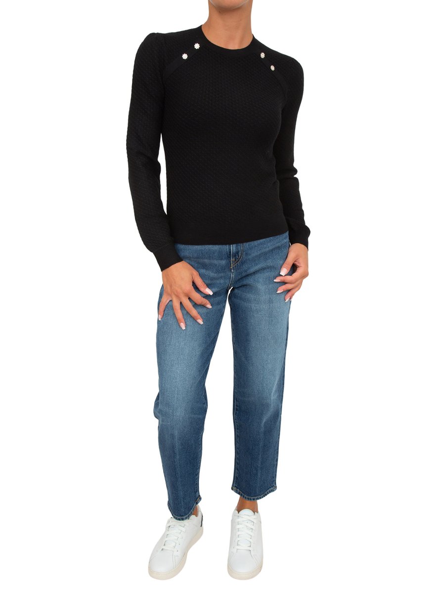 Maglia Emme Marella girocollo realizzata in misto viscosa, tinta unita e impreziosita da gioielli in metallo.