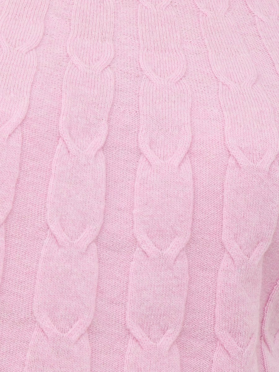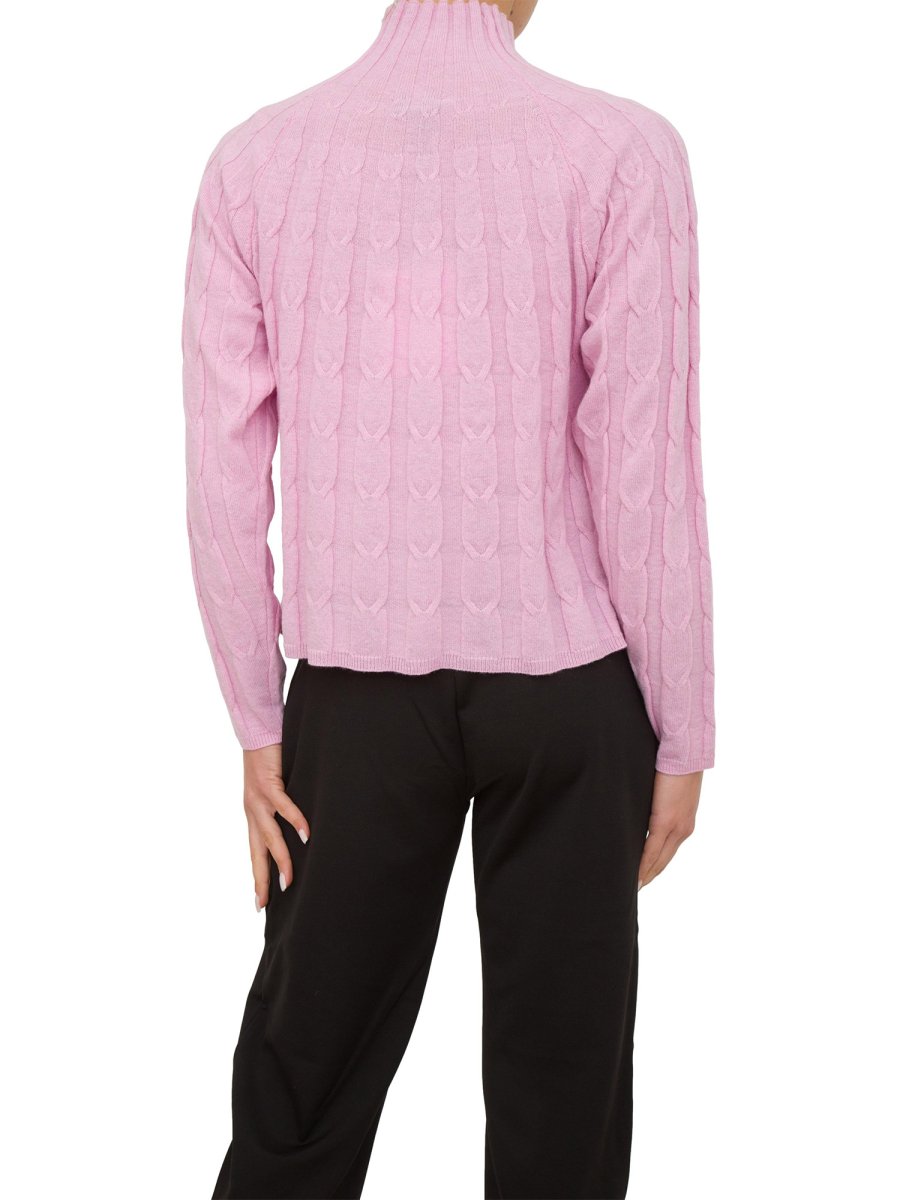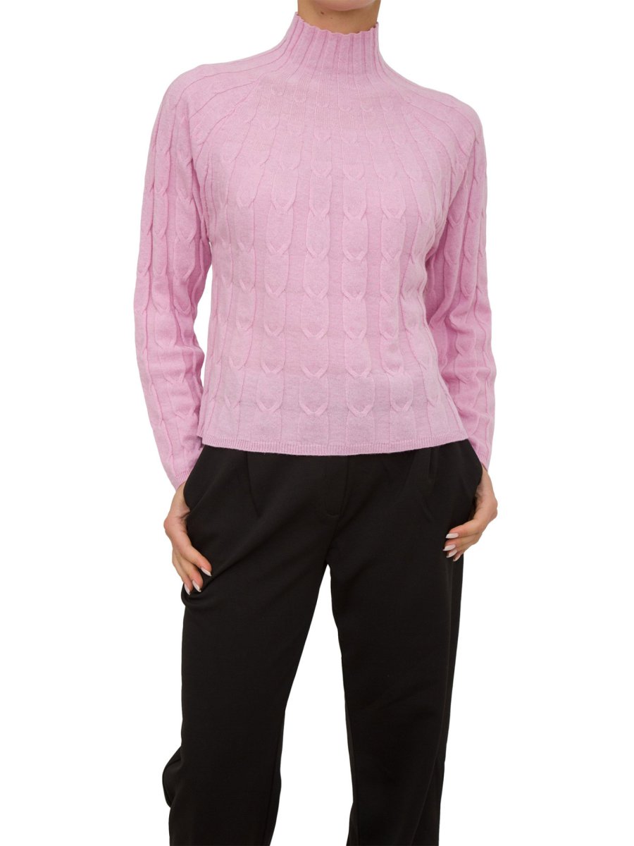 Maglia in lana a trecce con bordi a coste realizzata in lana, linea boxy. Collo alto, maniche raglan lunghe.