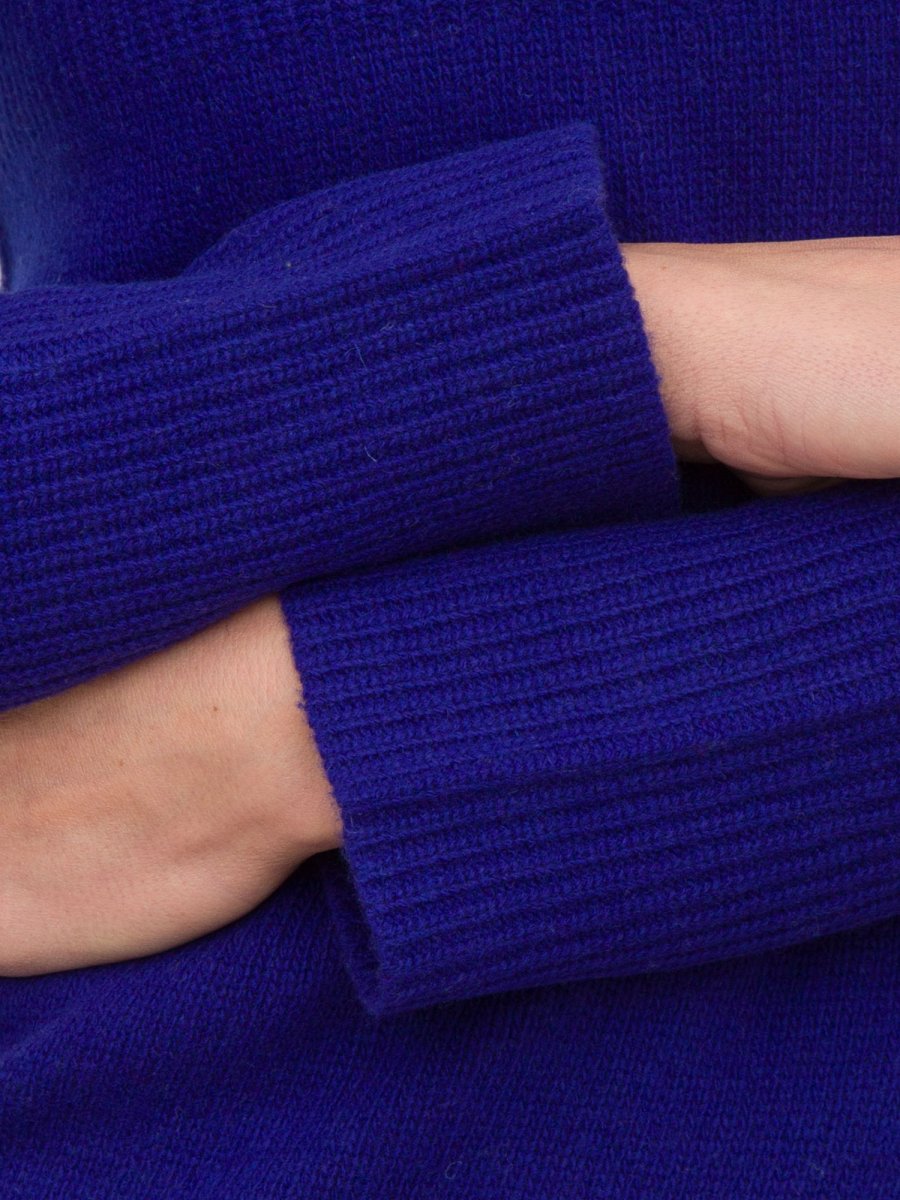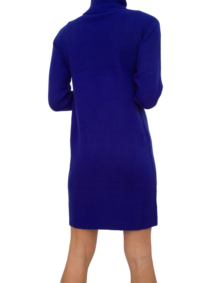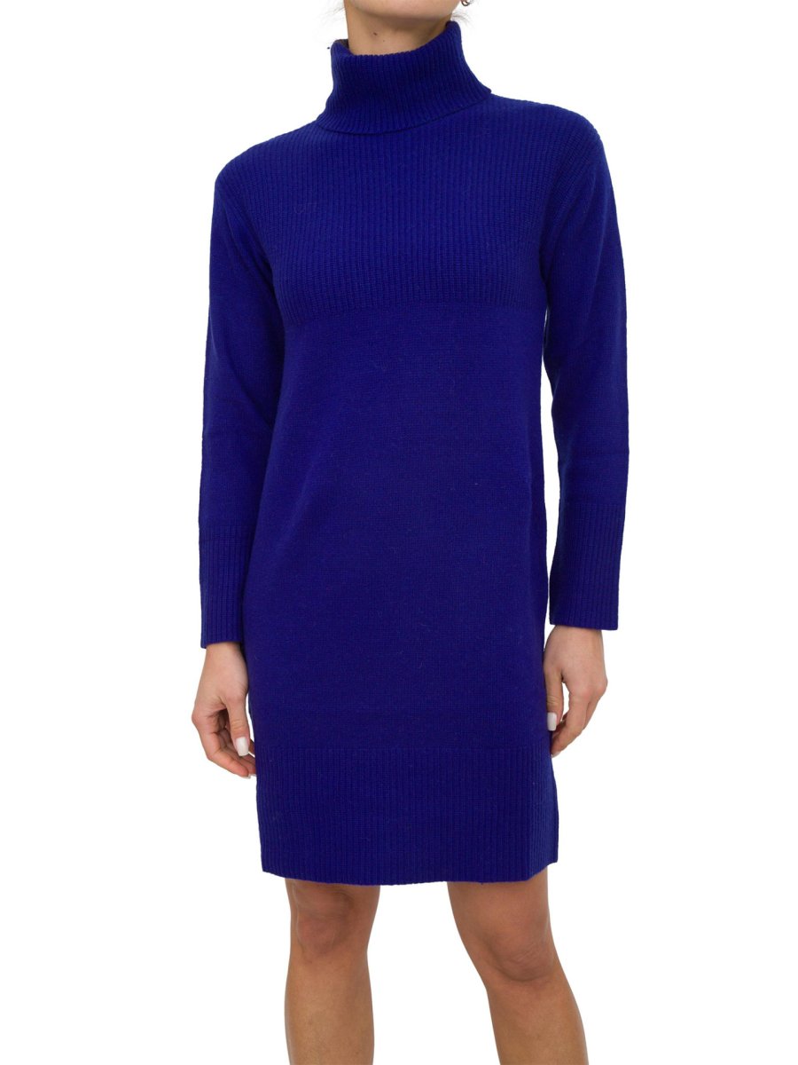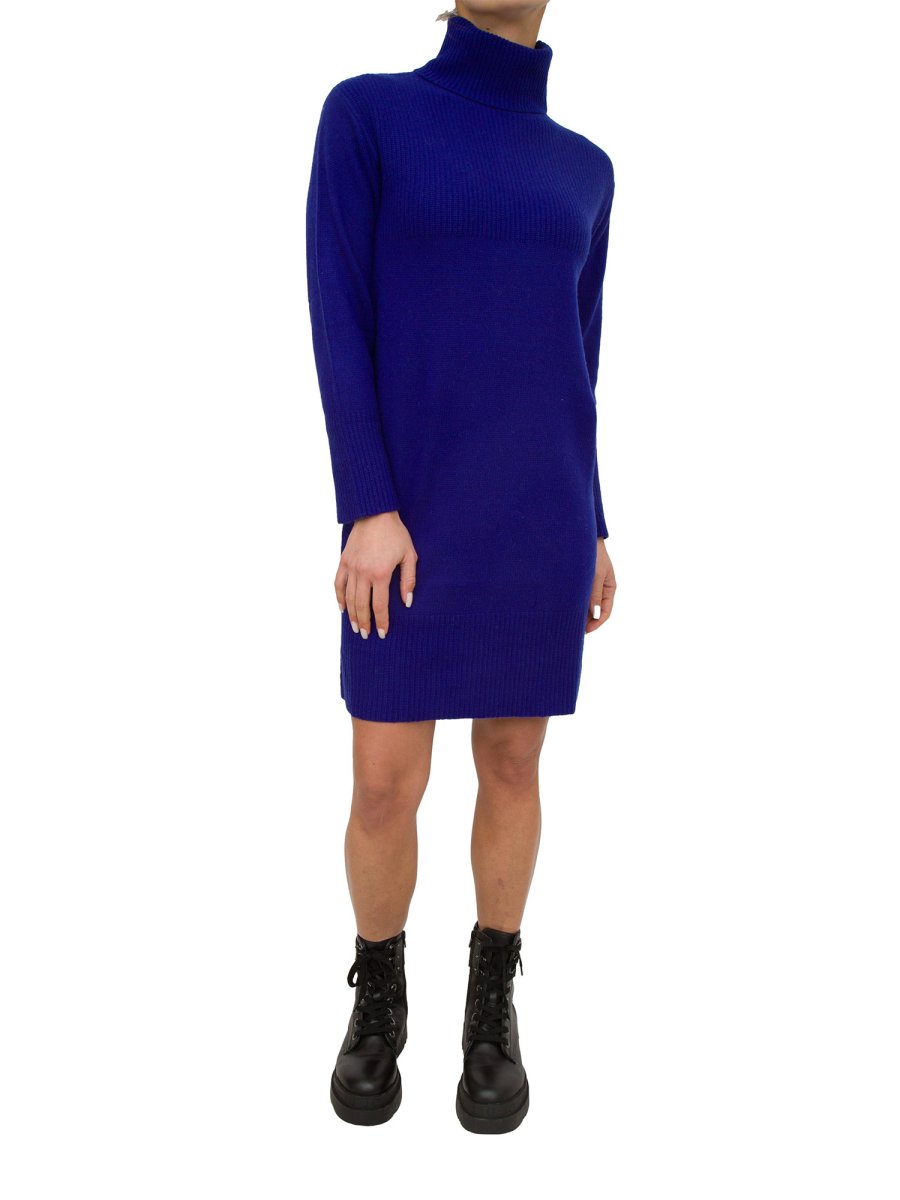 Abito in maglia di lana merinos, linea dritta. Collo alto, maniche lunghe con giro sceso. Spacchi laterali sul fondo.