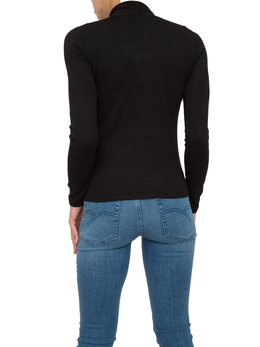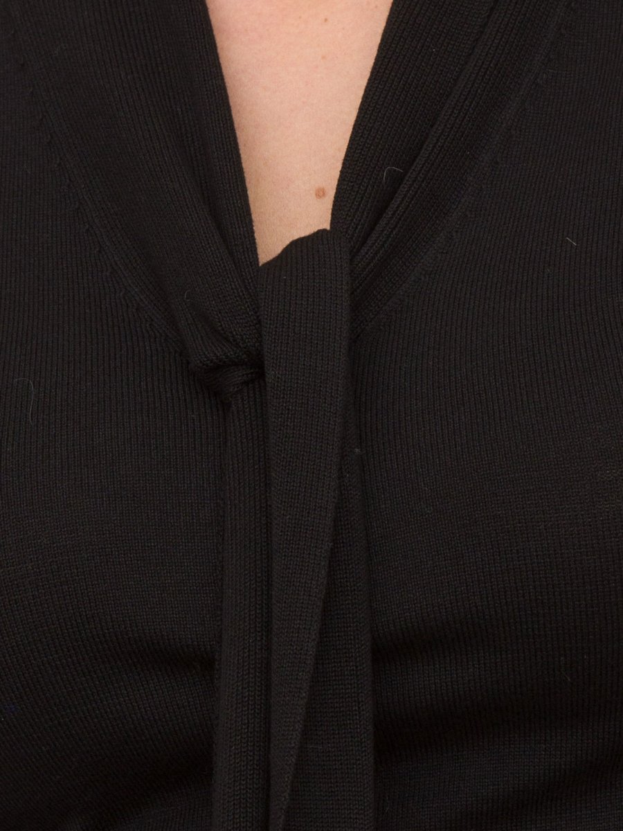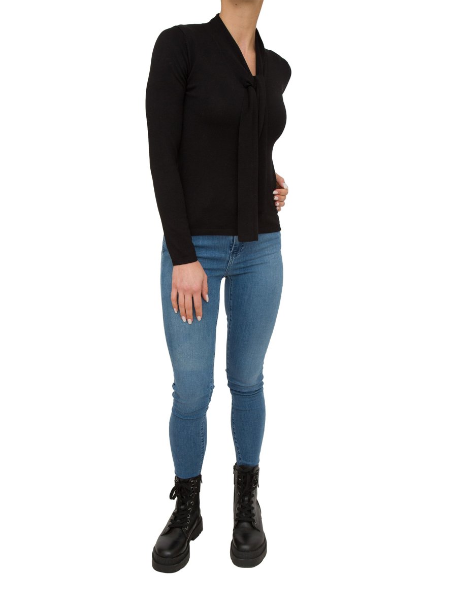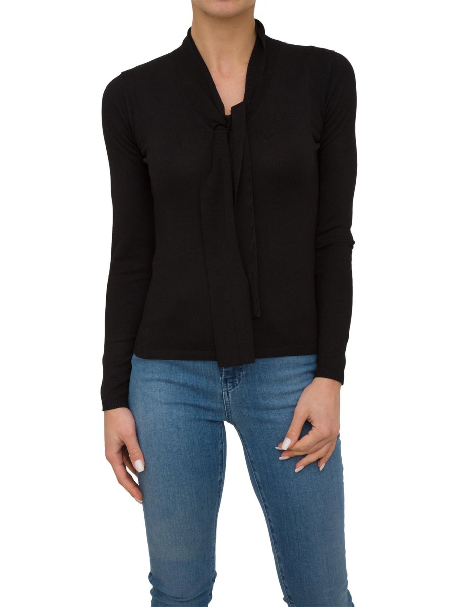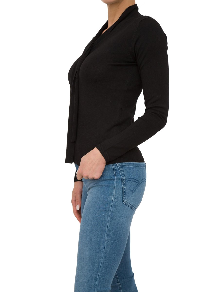 Maglia Emme Marella in viscosa stretch, linea slim. Scollo a V con sciarpina, maniche lunghe con polsino a coste.