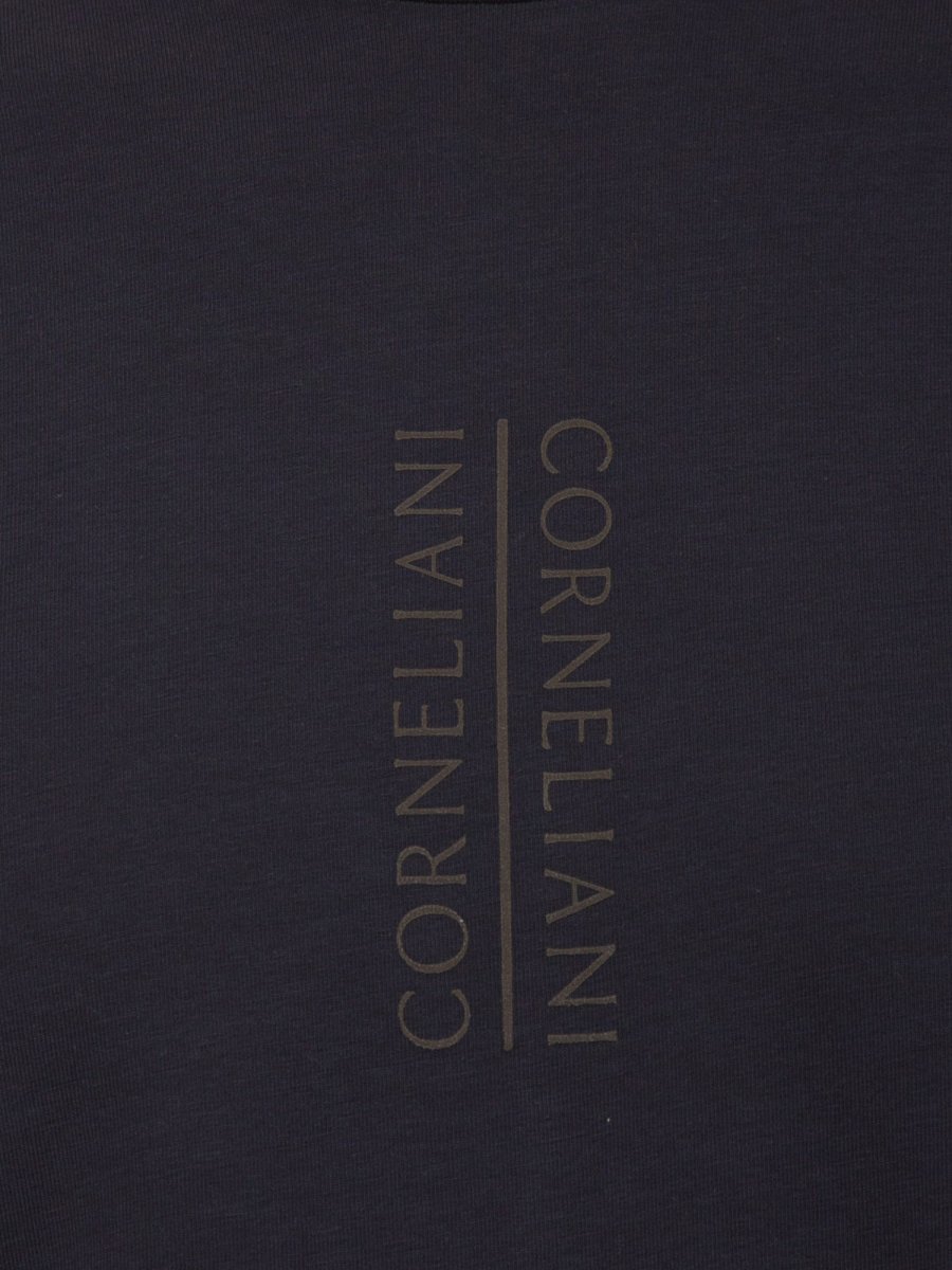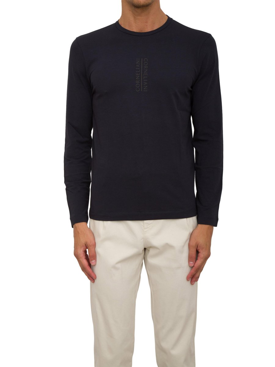 Футболка с круглым вырезом с длинными рукавами из эластичного хлопкового трикотажа с логотипом Corneliani внизу.