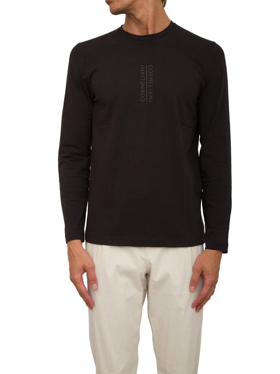 Футболка с длинными рукавами и круглым вырезом из эластичного хлопкового трикотажа с логотипом, напечатанным на груди.