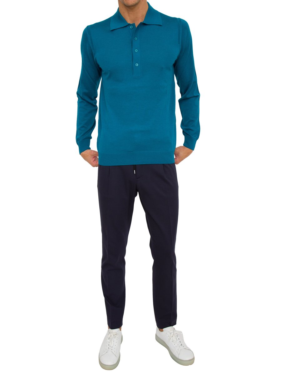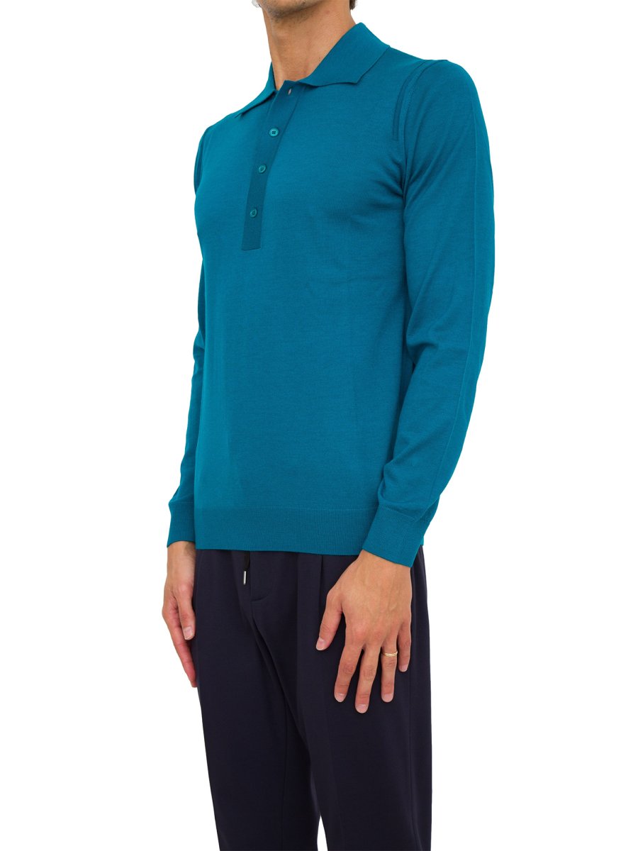Maglia a polo Paolo Pecora realizzata in lana merino extrafine, bottoni in madreperla e collo fondo e polsi a coste.