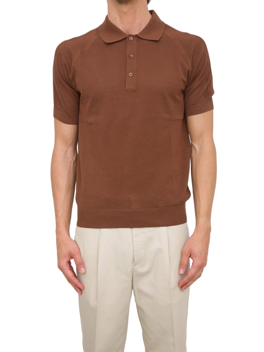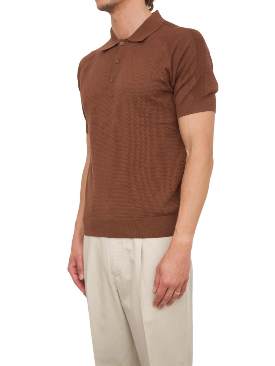 Polo in maglia a manica corta Paolo Pecora in cotone crepe extrafine. Caratterizzata da una lavorazione a traforo che le dona un tocco sobrio.