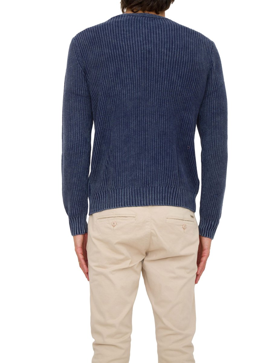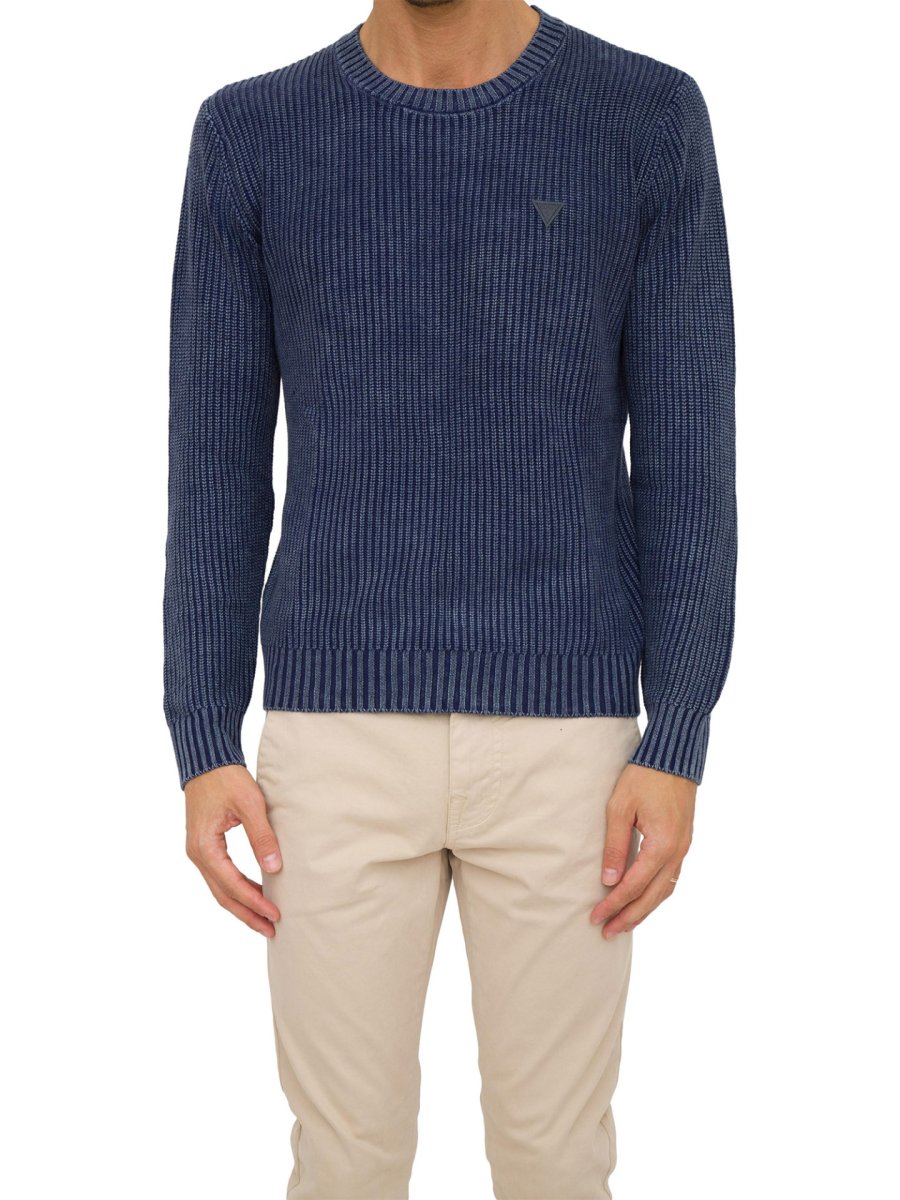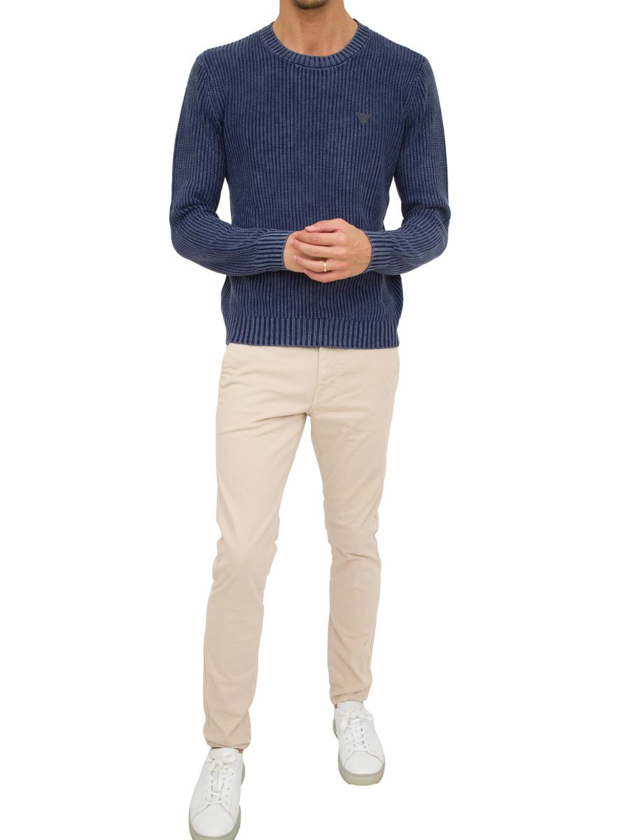 Maglione girocollo da uomo Guess Jeans realizzato in misto cotone, maniche lunghe, profili a costine e vestibilità regular.