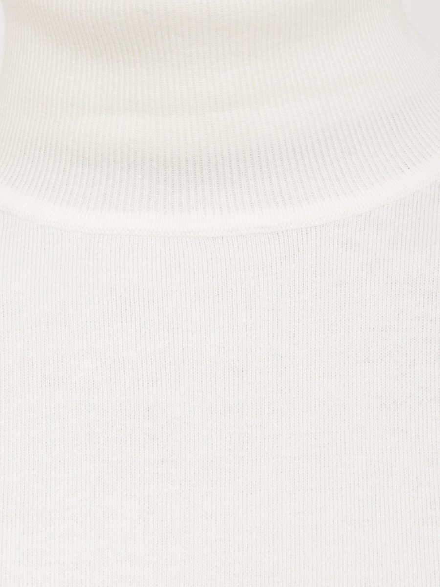 Свитер с высоким воротником стандартной посадки. Выполнен из смеси шерсти и кашемира. Доступен в однотонном цвете, имеет ребристую вязку на манжетах, подоле и воротнике. Завершает дизайн металлическая пластина, нанесенная на спинку.