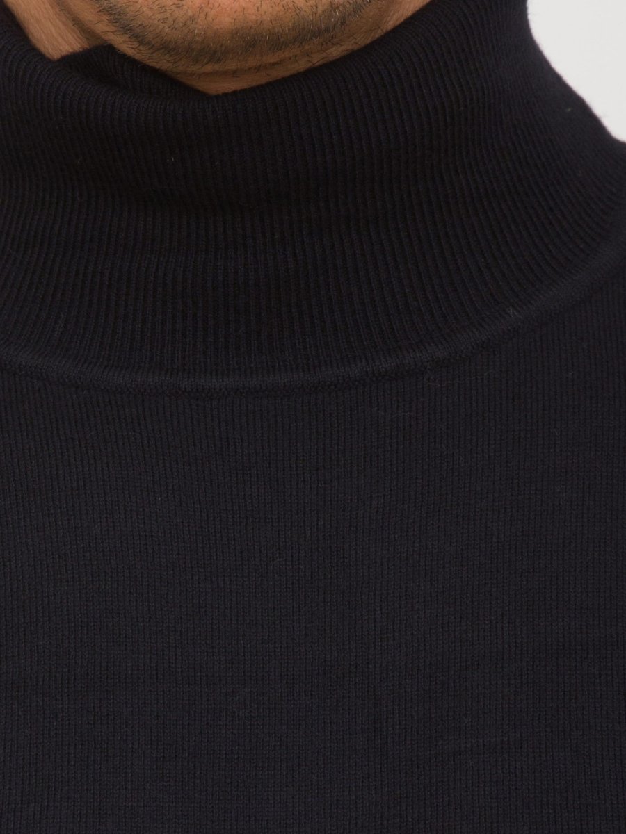 Свитер с высоким воротником стандартной посадки. Выполнен из смеси шерсти и кашемира. Доступен в однотонном цвете, имеет ребристую вязку на манжетах, подоле и воротнике. Завершает дизайн металлическая пластина, нанесенная на спинку.
