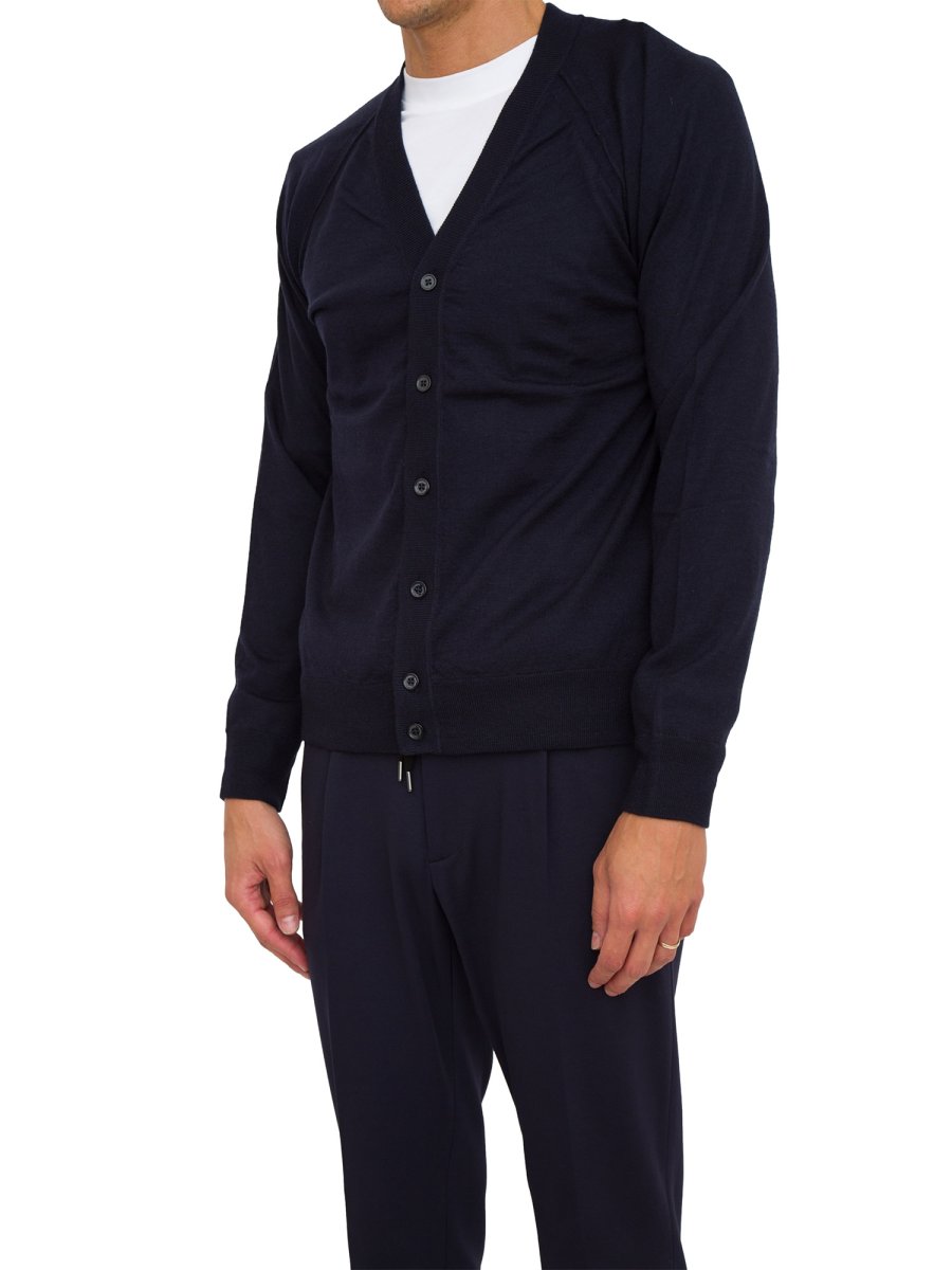 Cardigan da uomo Paolo Pecora realizzato in lana, maniche lunghe, lavorazione a maglia fine, profili a coste, orlo dritto a coste, regular fit e