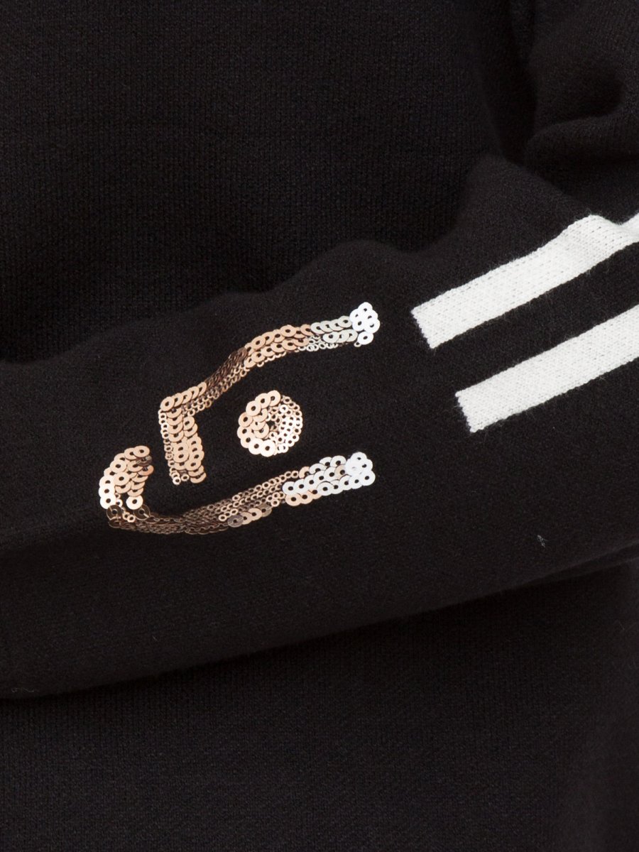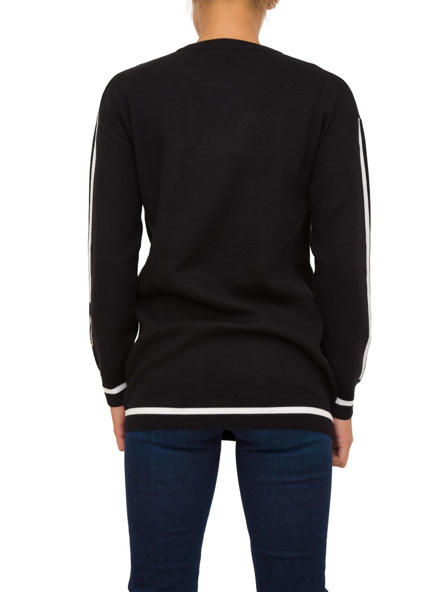 Maglia lunga da donna LIU-JO in misto viscosa, logo con paillettes sulla manica, taglio girocollo, maniche lunghe, polsi, fondo e maniche con motivo a righe e bordi rifiniti a costine.