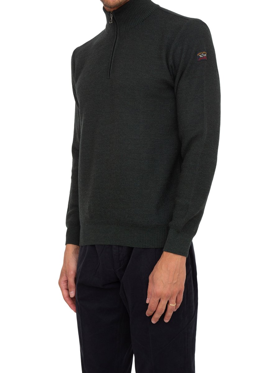 Maglia Paul&Shark in lana finezza 12, chiusura con mezza zip, manica lunga e collo polsi e balza a costine. Regular Fit.