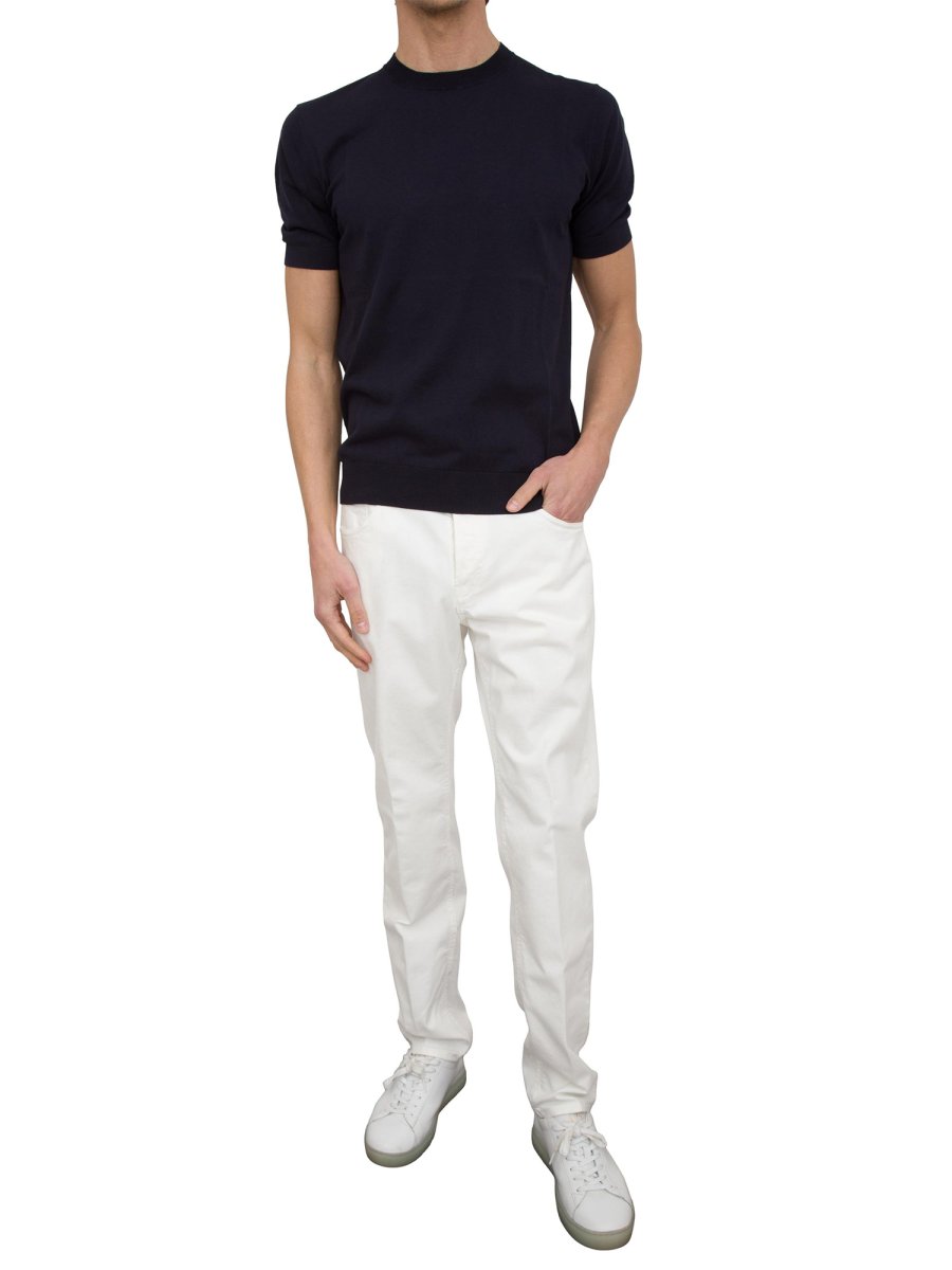 Подчеркните свой стиль с помощью свитера с круглым вырезом из чистого хлопка экстратонкой выделки. Изделие с трикотажной отделкой обеспечивает безупречный комфорт и идеально сидит по фигуре. Универсальный и неподвластный времени, он является неотъемлемым элементом элегантного образа.