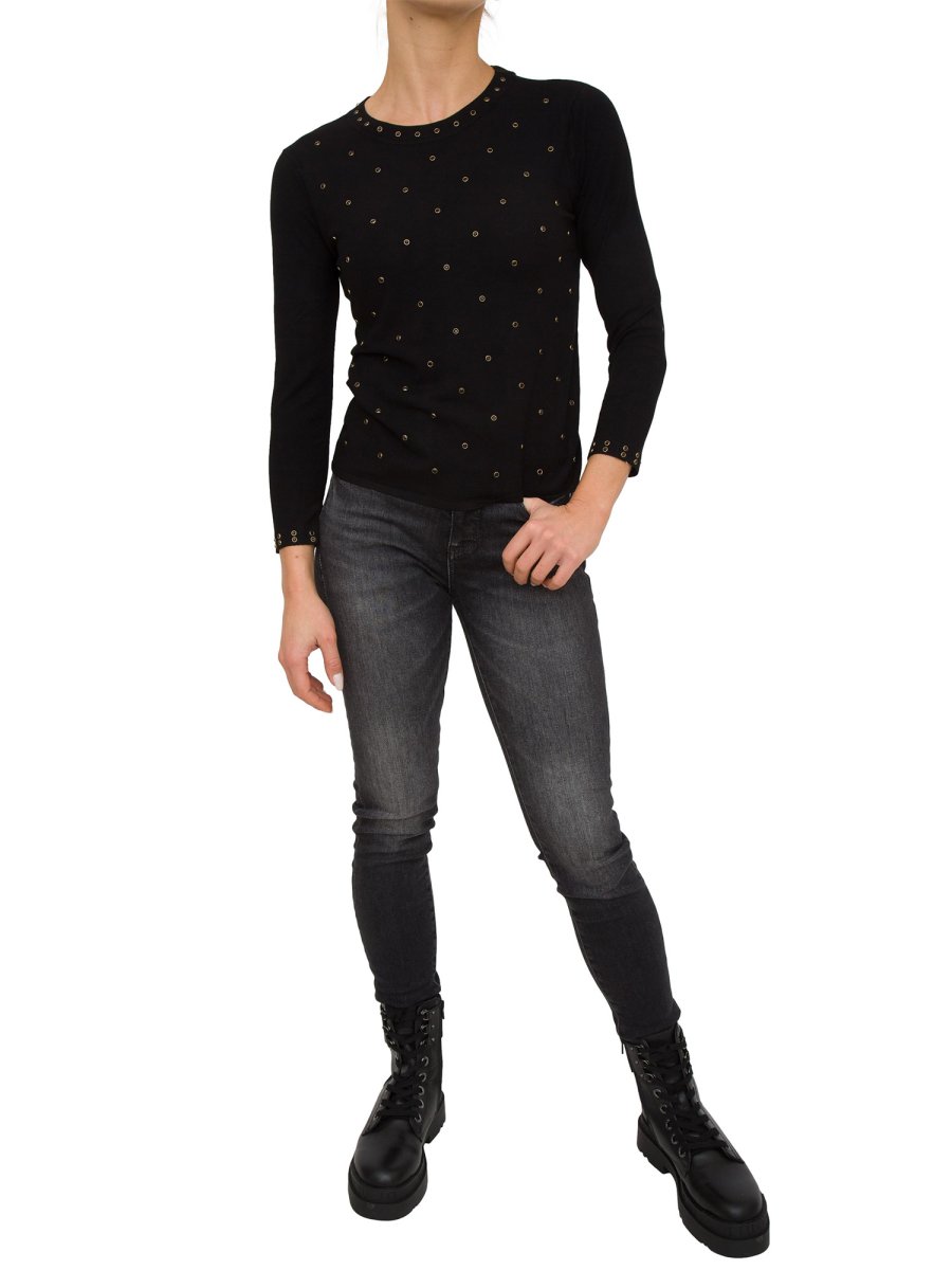 Женский свитер TWIN-SET MAGLIA GIROCOLLO M/C CON APPLICAZIONI NERO