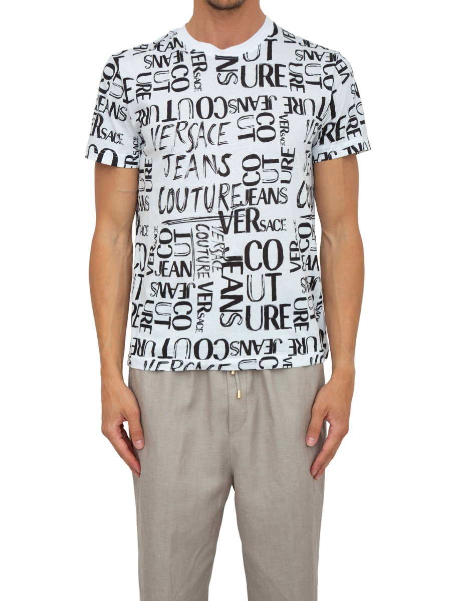 T-shirt Versace Jeans Couture in cotone con logo all over, scollatura a girocollo, maniche corte e fit regolare.