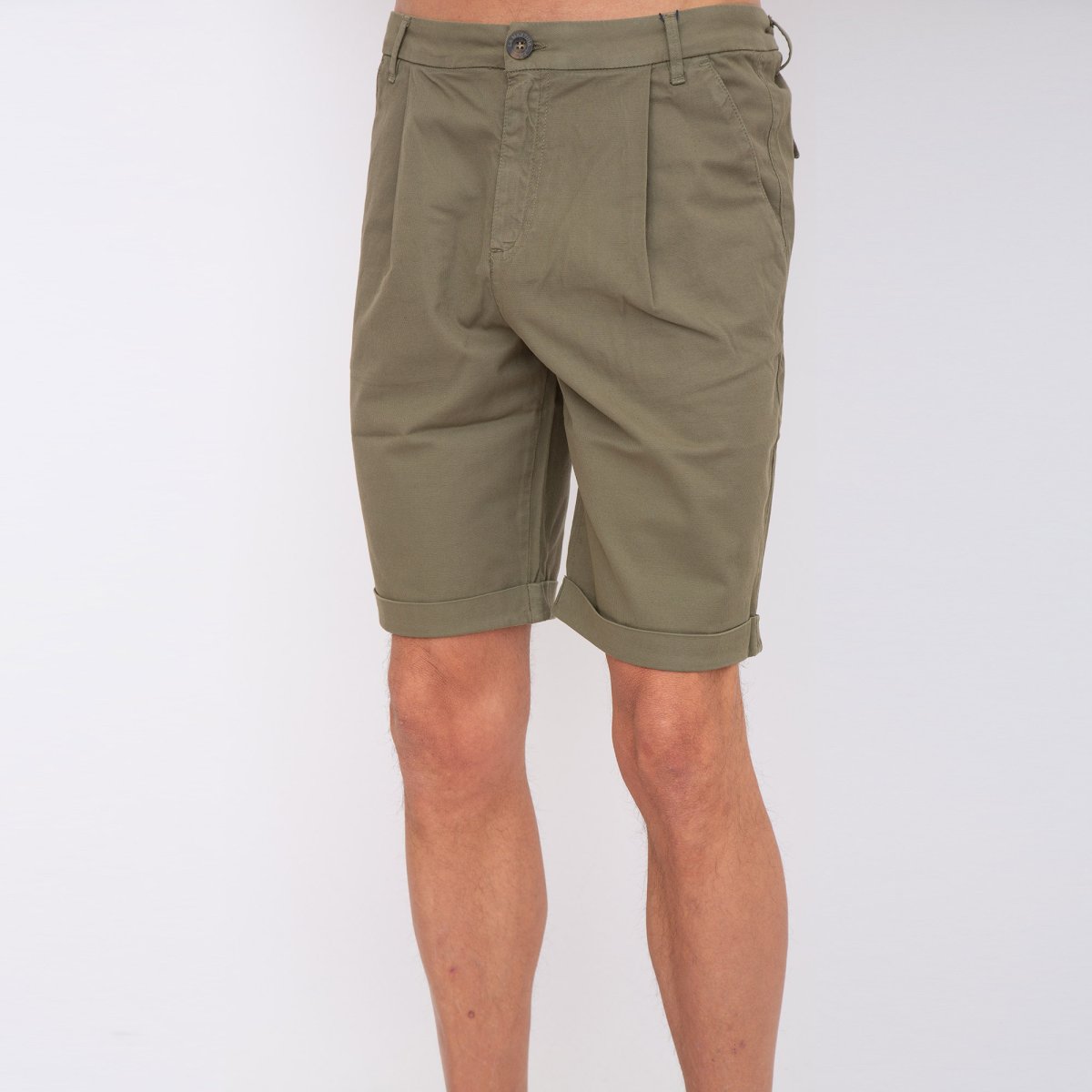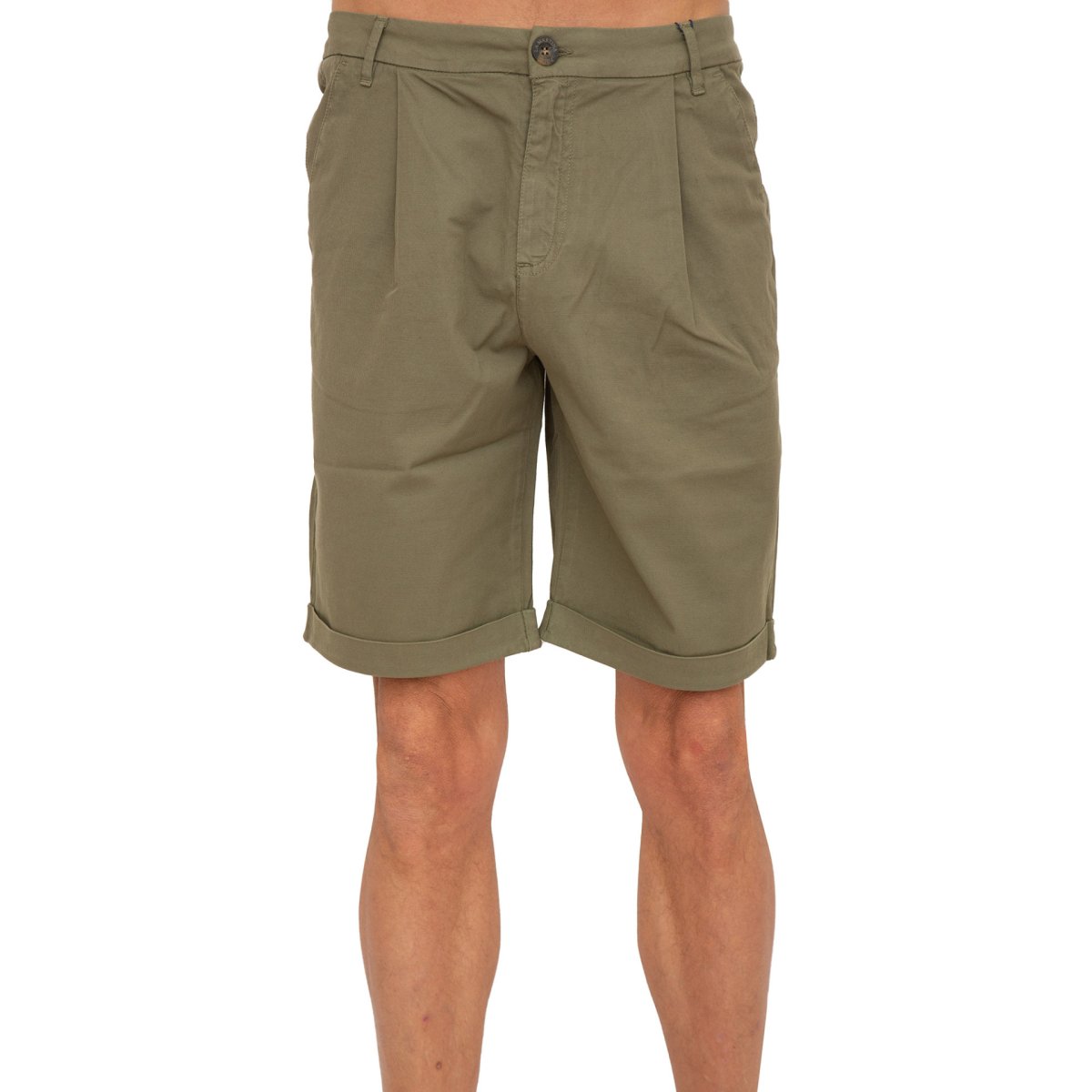 Bermuda da uomo in tinta unita, realizzato in un tessuto misto di lino e cotone. Modello cinque tasche con lunghezza al ginocchio, ha una chiusura con bottone. La vestibilità regolare lo rende adatto ad ogni tipo di silhouette.