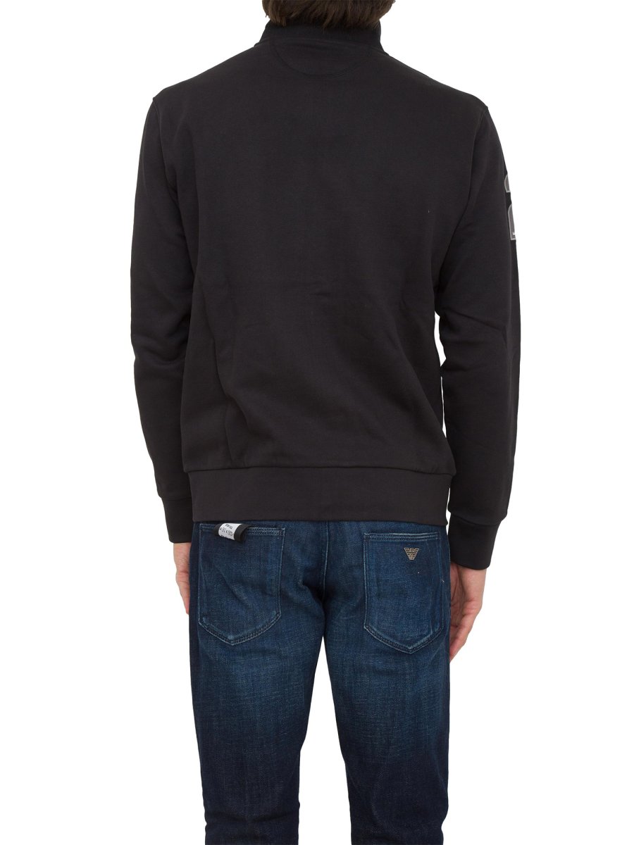 Felpa da uomo a maniche lunghe con collo alto realizzata in 100% cotone in una tinta unita e un logo sulla parte anteriore in rilievo con stampa patch sulla manica. La vestibilità è regolare, con chiusura a zip.