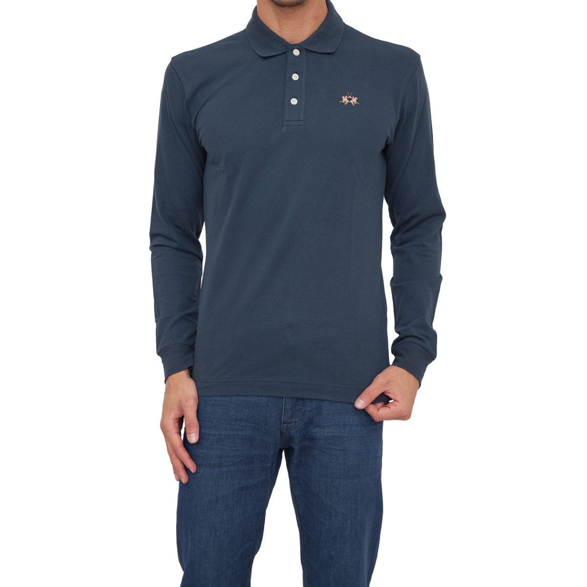 - Мужское поло LA MARTINA MAN POLO L/S PIQUET STRETCH BLU