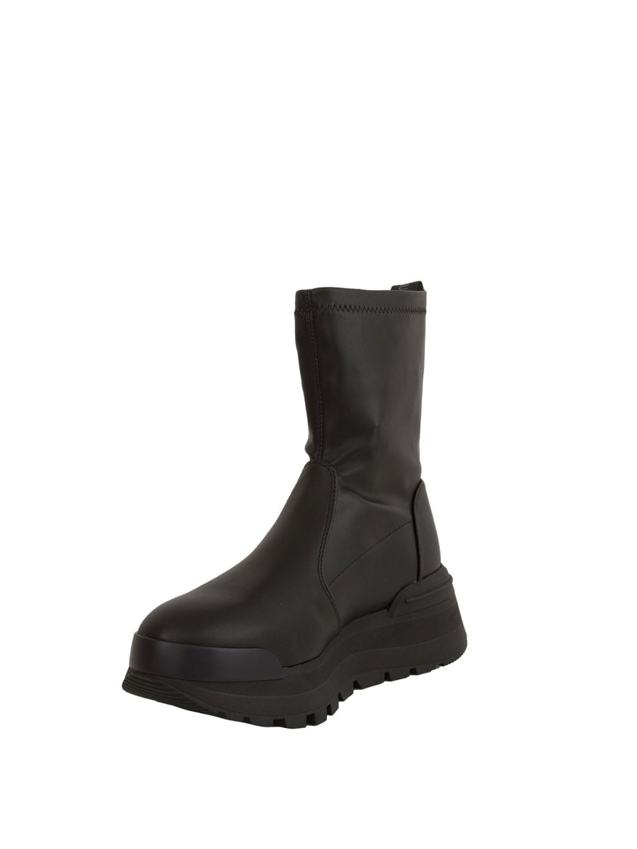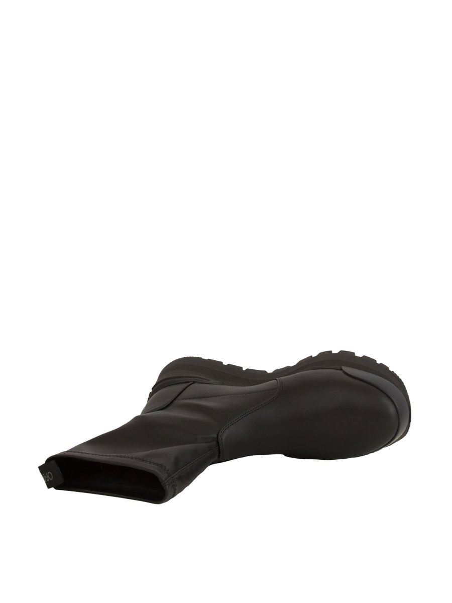 Stivaletti donna Liu-Jo con tomaia in tessuto stretch, suola platform con scritta MADE TO FEEL AMAZING, patch logo gommato applicato sul lato e stampa logo sul tallone. Altezza suola: 5 cm , altezza gambale: 17 cm.
