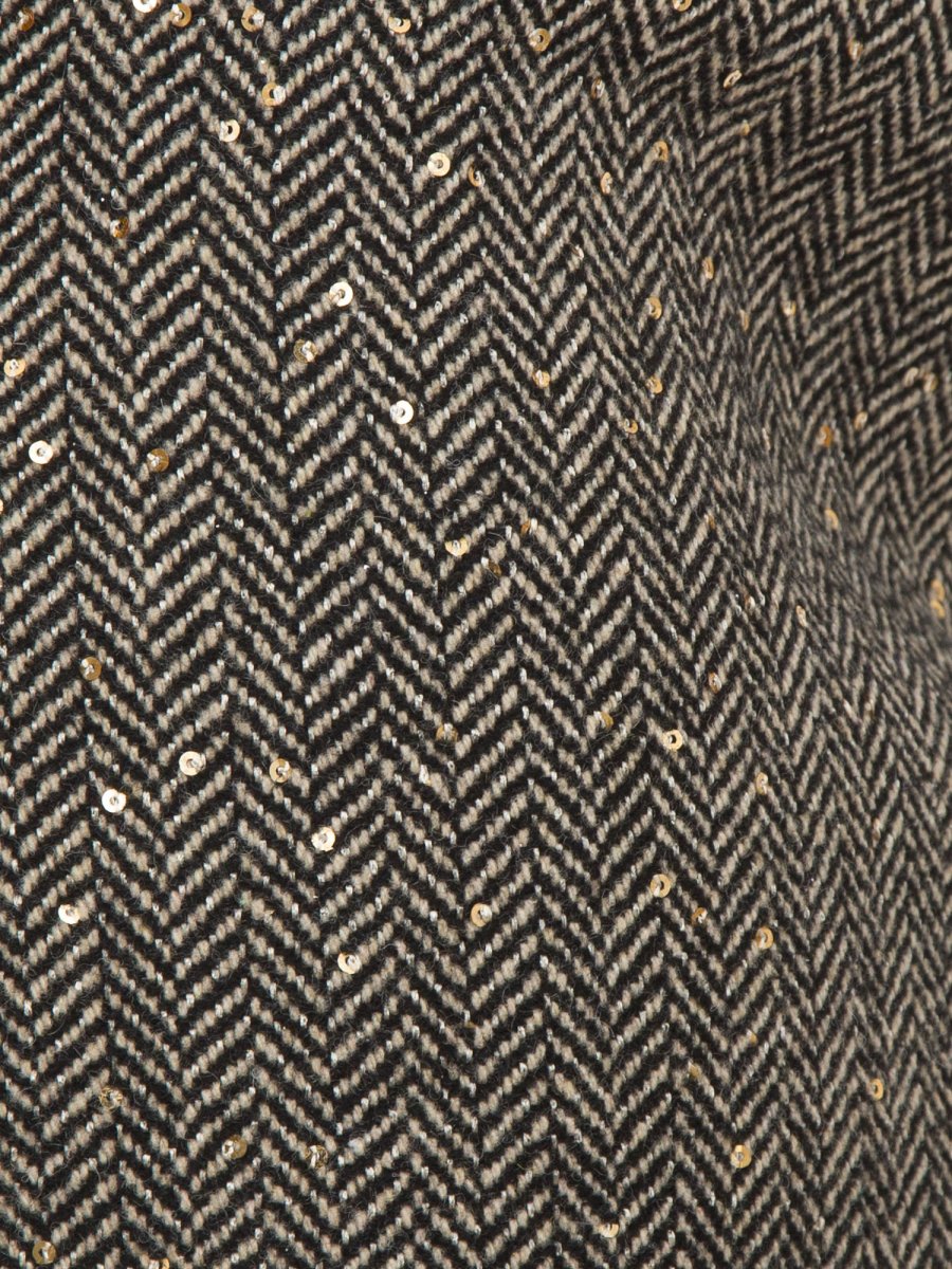 Minigonna Twinset in misto lana con armatura chevron bicolore con paillettes, chiusura con zip, foderato.