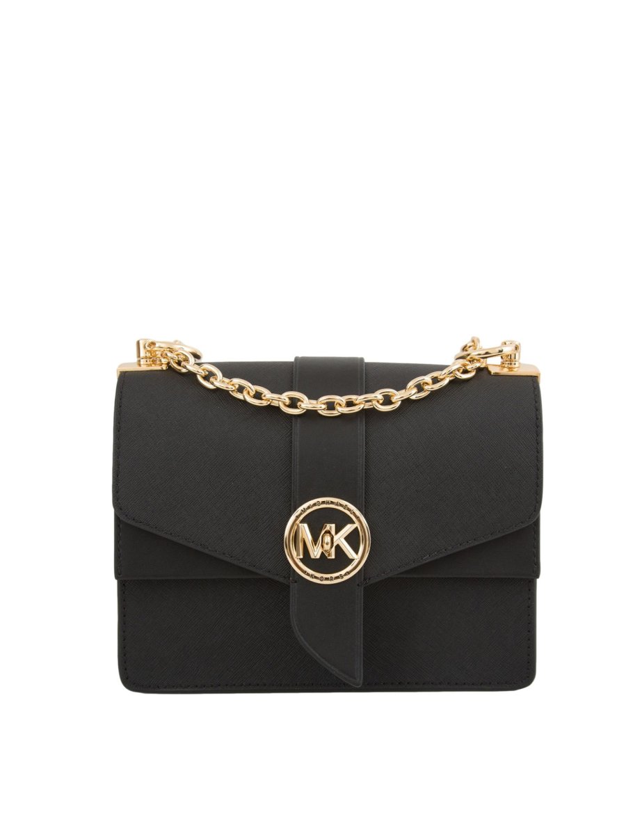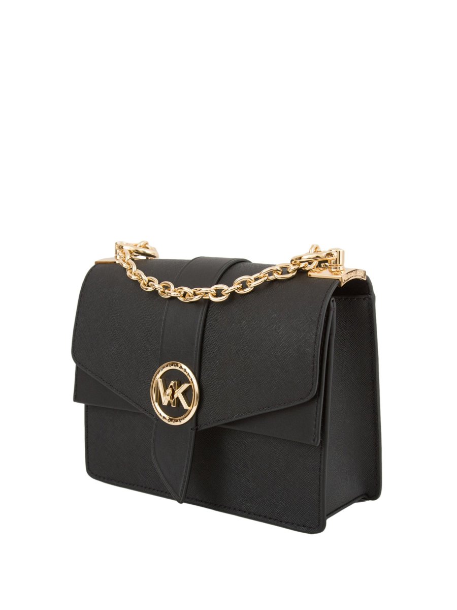 Маленькая сумка через плечо Greenwich из сафьяновой кожи. Структурированный силуэт дополнен элегантной поворотной застежкой и регулируемым ремнем-цепочкой золотистого цвета.