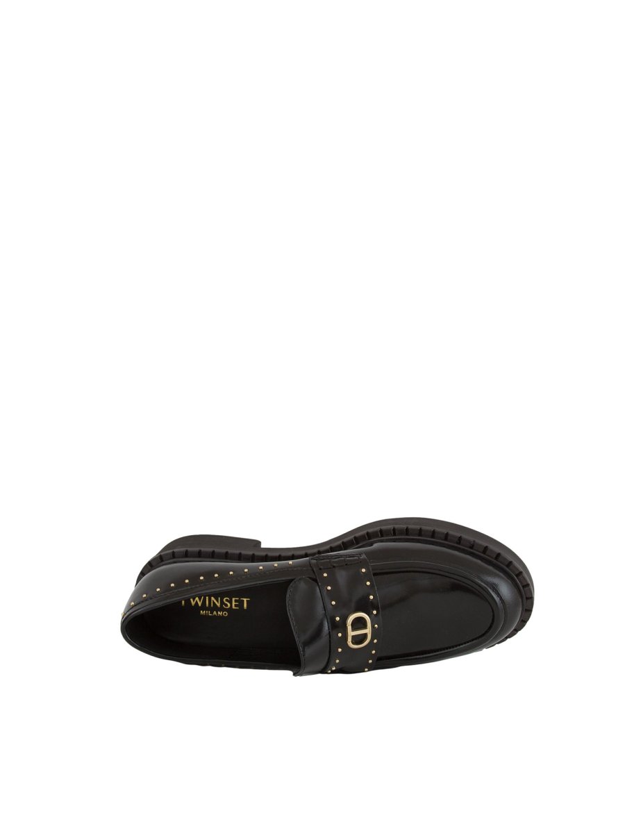 Женская классическая обувь TWIN-SET MOCASSINO IN PELLE CON MICRO BORCHIE NERO