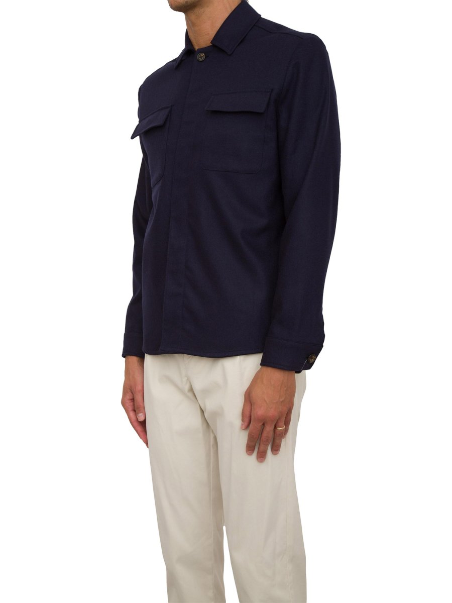 Мужская куртка-рубашка Eleventy из смесовой шерсти и кашемира с длинными рукавами, застежкой на пуговицы и двумя нагрудными карманами.