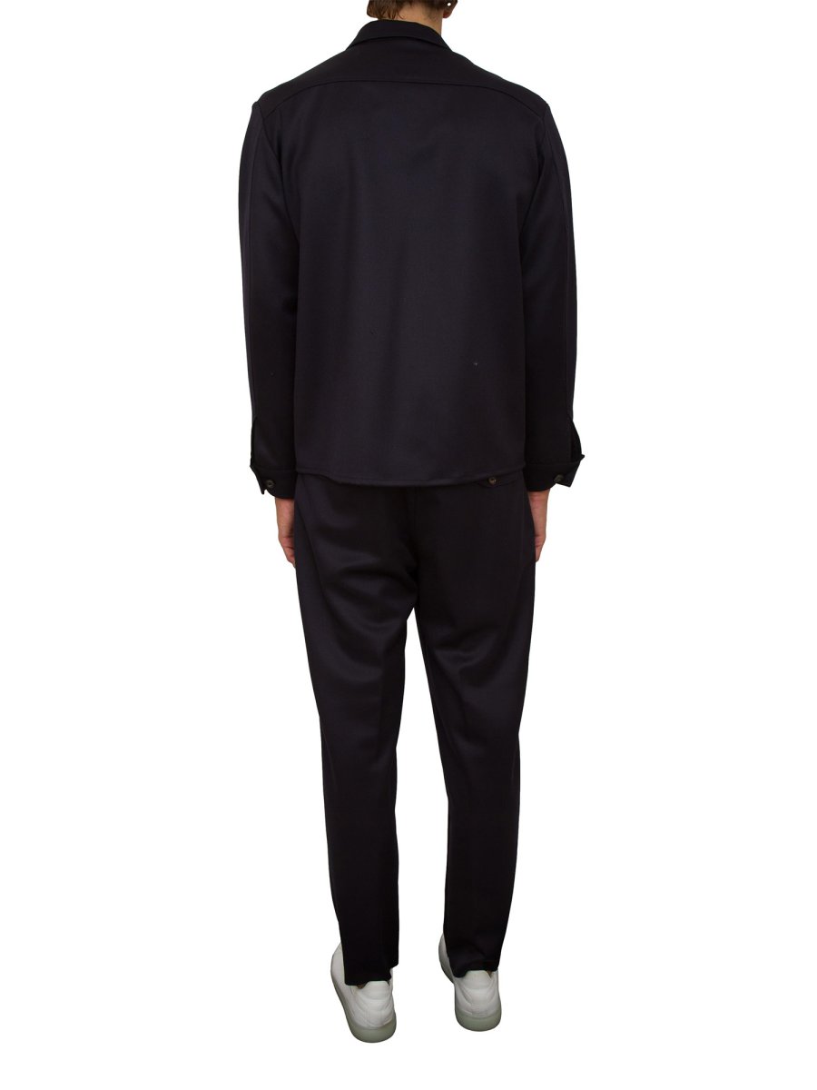 Костюм с курткой поверх рубашки и брюками с двойными складками выполнен из теплой ткани из 100% плотной шерсти. Роговые пуговицы с логотипом дополняют этот предмет одежды, который становится особенно универсальным благодаря наличию двух накладных карманов на груди. Под воротником имеется вставка из мягкой замши в тон. Новый крой брюк с видимыми пуговицами на петлях для ремня обеспечивает новую свободную посадку.